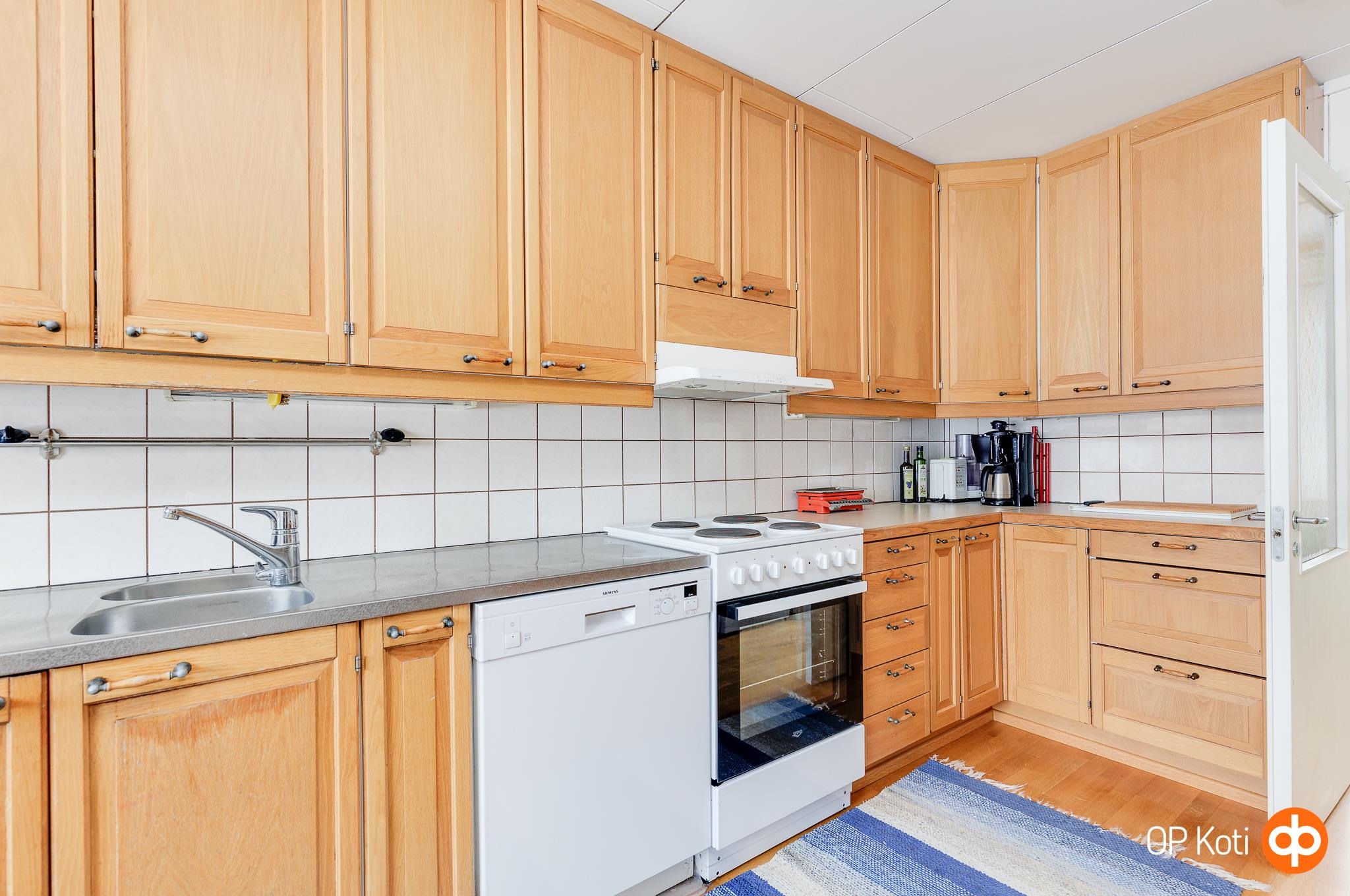Keittiö on toimiva ja tarjoaa hyvin säilytystilaa arjen tarpeisiin. Koti lämpiää energiatehokkaasti kaukolämmöllä, johon lämmitysmuoto on myöhemmin vaihdettu. Lämmönjako tapahtuu vesikiertoisella patterilämmityksellä, ja kylpyhuoneessa on miellyttävä vesikiertoinen lattialämmitys.