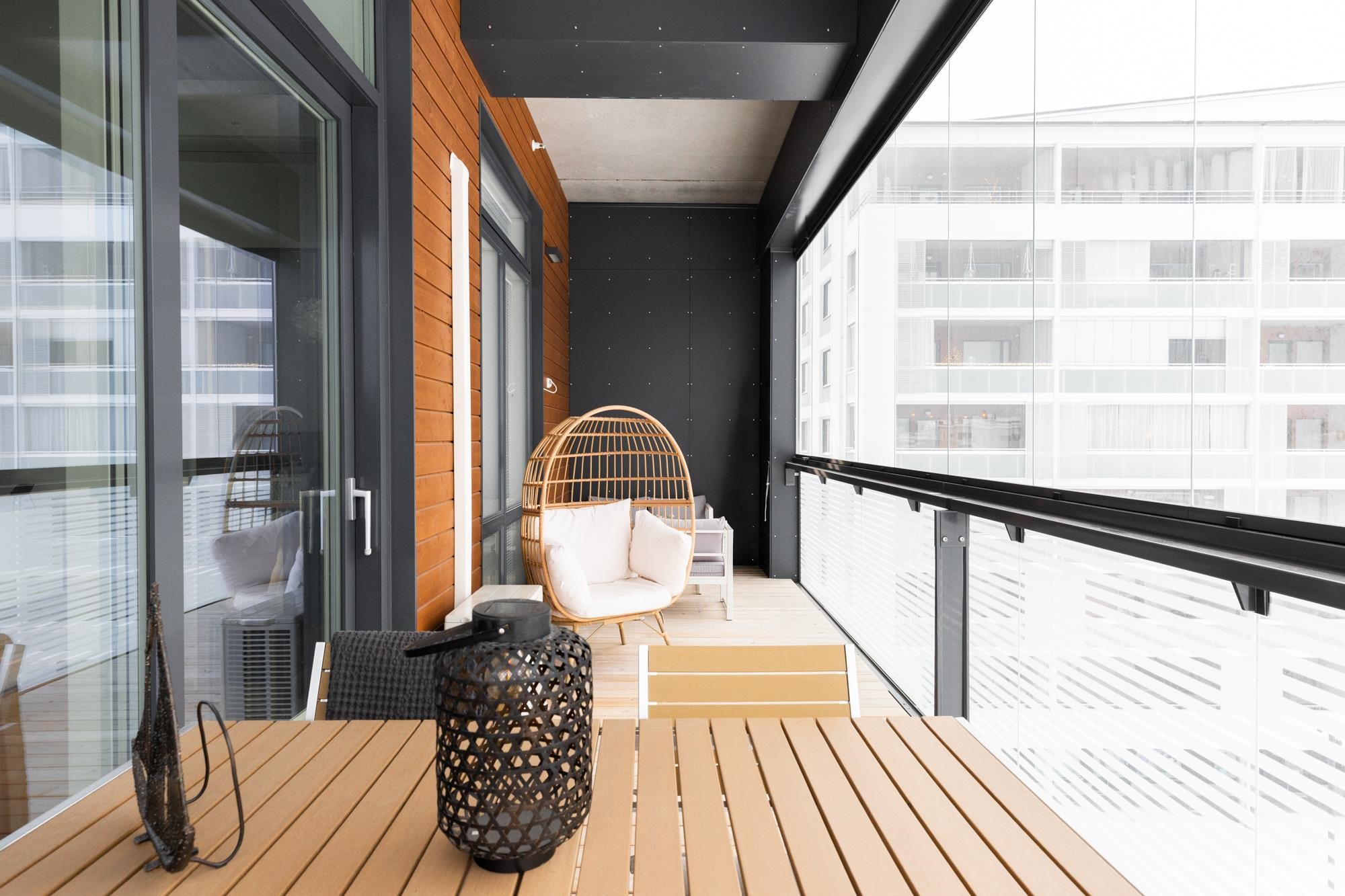 Tämä poikkeuksellisen huonekorkeuden omaava neljännen kerroksen kaupunkikoti on viihtyisä ja laadukkailla materiaaleilla toteutettu kokonaisuus. Suuret ikkunat tekevät huoneistosta valoisan ja avaran. Lasitettu parveke luo täydellisen tilan rentoutumiseen aina aikaisesta keväästä pitkälle syksyyn. Kodinkoneet ovat laadukkaat ja käytännölliset, ja kesähelteillä asumismukavuutta lisää ilmalämpöpumppu.