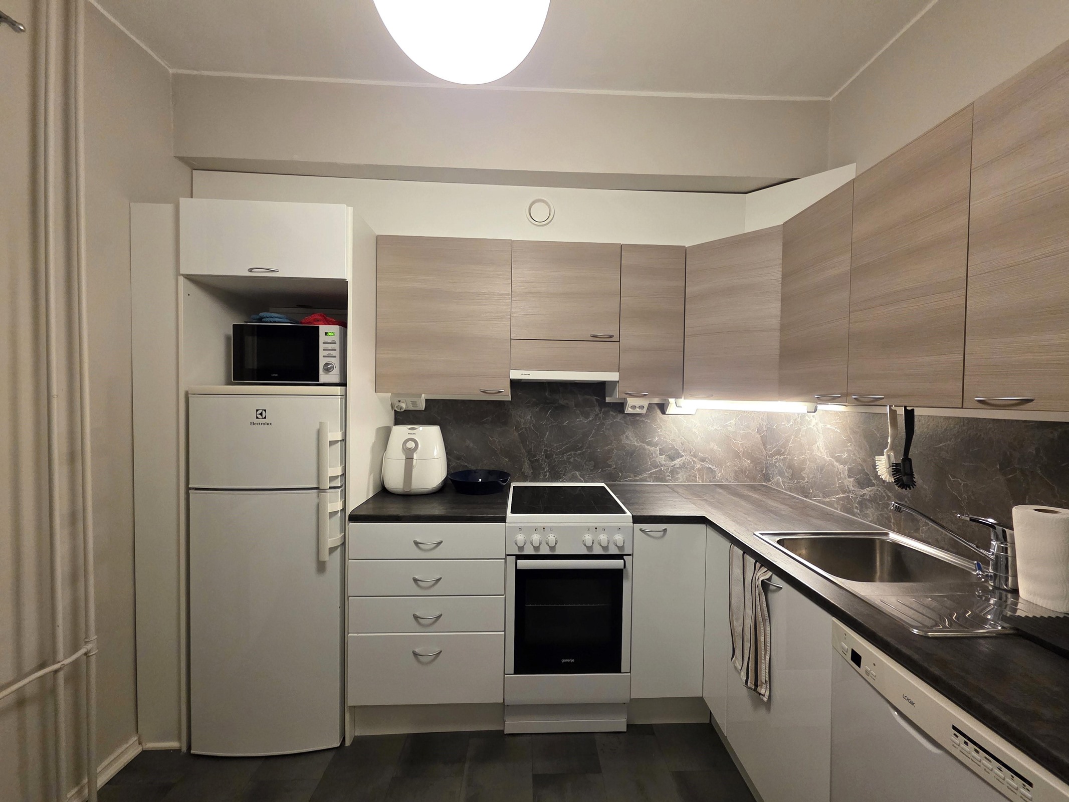 - Jenkkikaappi, lattialiesi, liesituuletin, astianpesukone, kaapistot, kiinteät valaisimet.