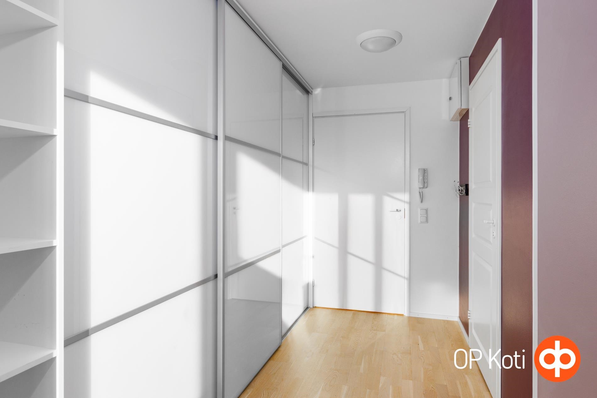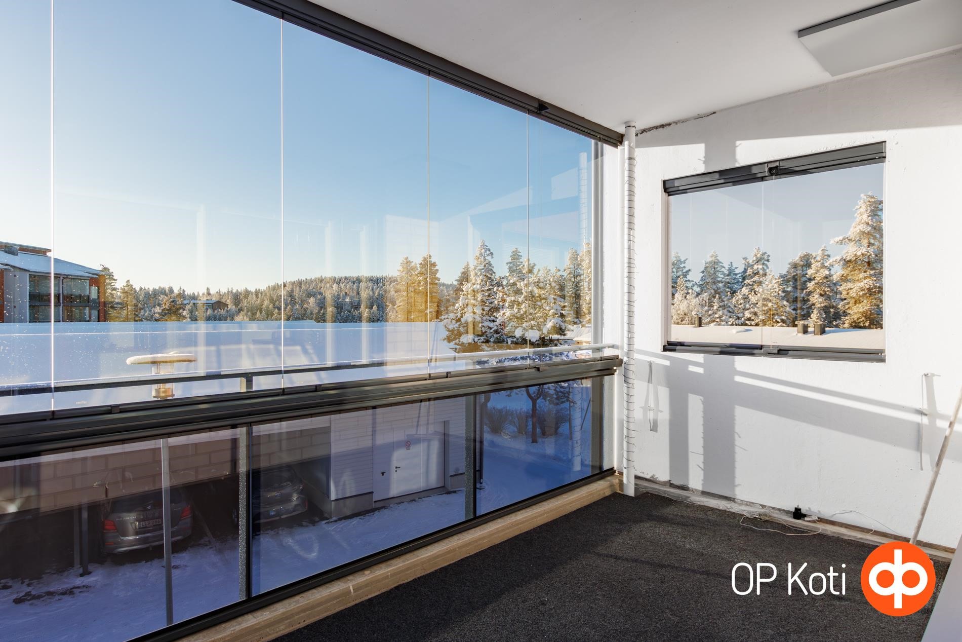 Säilytystilaa on runsaasti eteisessä ja molemmissa makuuhuoneissa. Käytännölliseen keittiöön mahtuu hyvin ruokapöytä, ja kodin kruunaa poikkeuksellisen suuri parveke, joka tuo arkeen lisää tilaa ja viihtyisyyttä. Asunnolle kuuluu oma autokatospaikka.