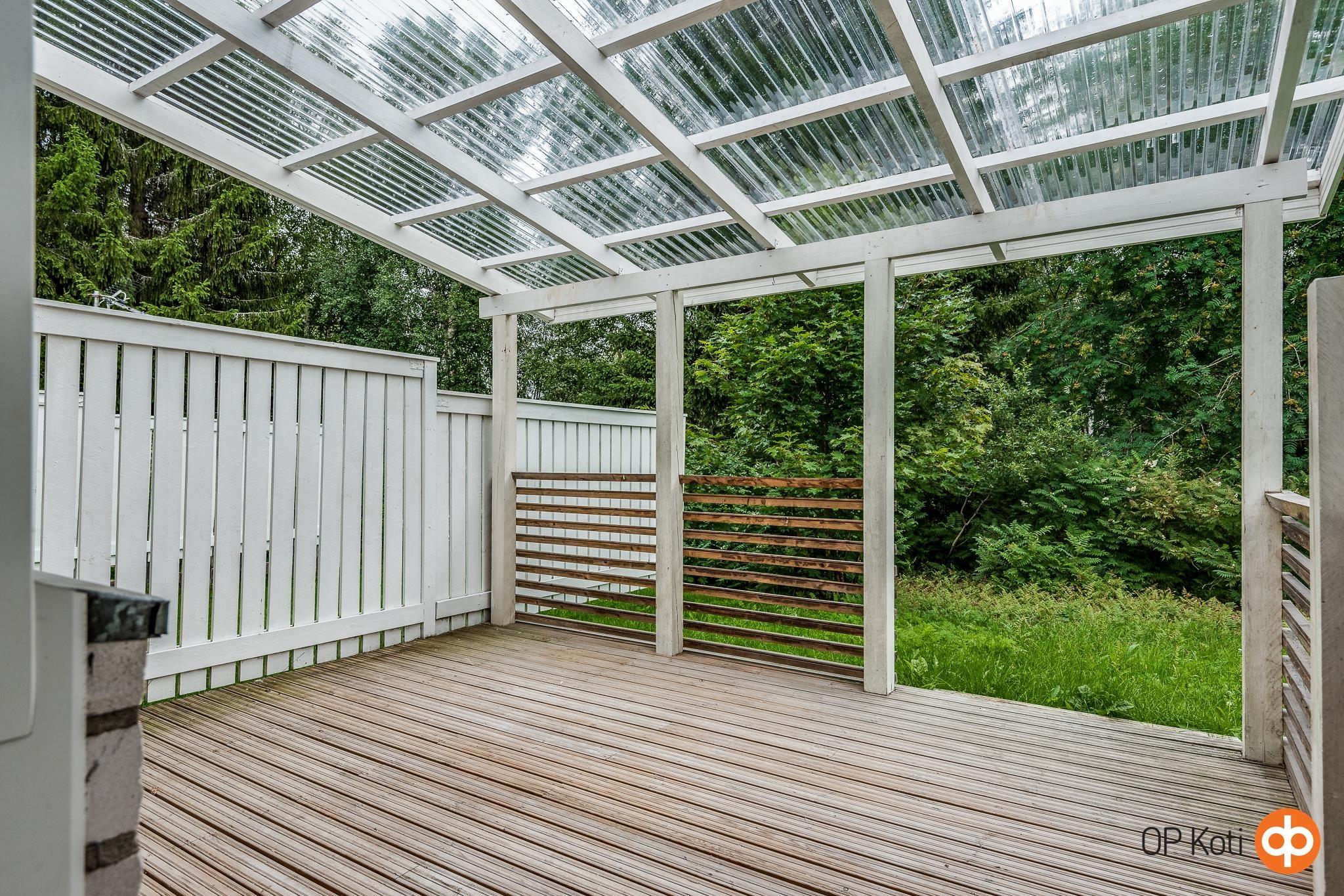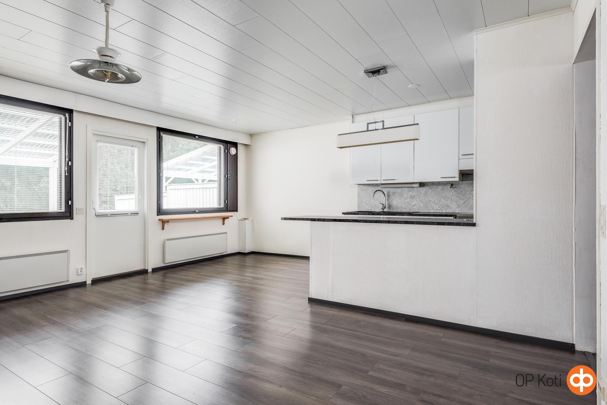 Tämä tilava koti tarjoaa erinomaiset puitteet viihtyisään arkeen. Huoneiston pohjaratkaisu on suunniteltu toimivaksi: keittiö avautuu olohuoneeseen, ja saareke tuo lisää säilytystilaa ja helpottaa arjen askareita. Olohuoneen jatkona avautuu kaakkoon suuntautuva katettu terassi, jonka kautta pääset piha-alueelle - täydellinen paikka aamukahville tai kesäiltojen viettoon. Makuuhuoneessa ja eteisessä on mukavasti säilytystilaa vaatehuoneen ja komeroiden ansiosta, ja ulkovarasto tuo lisäkäytännöllisyyttä.