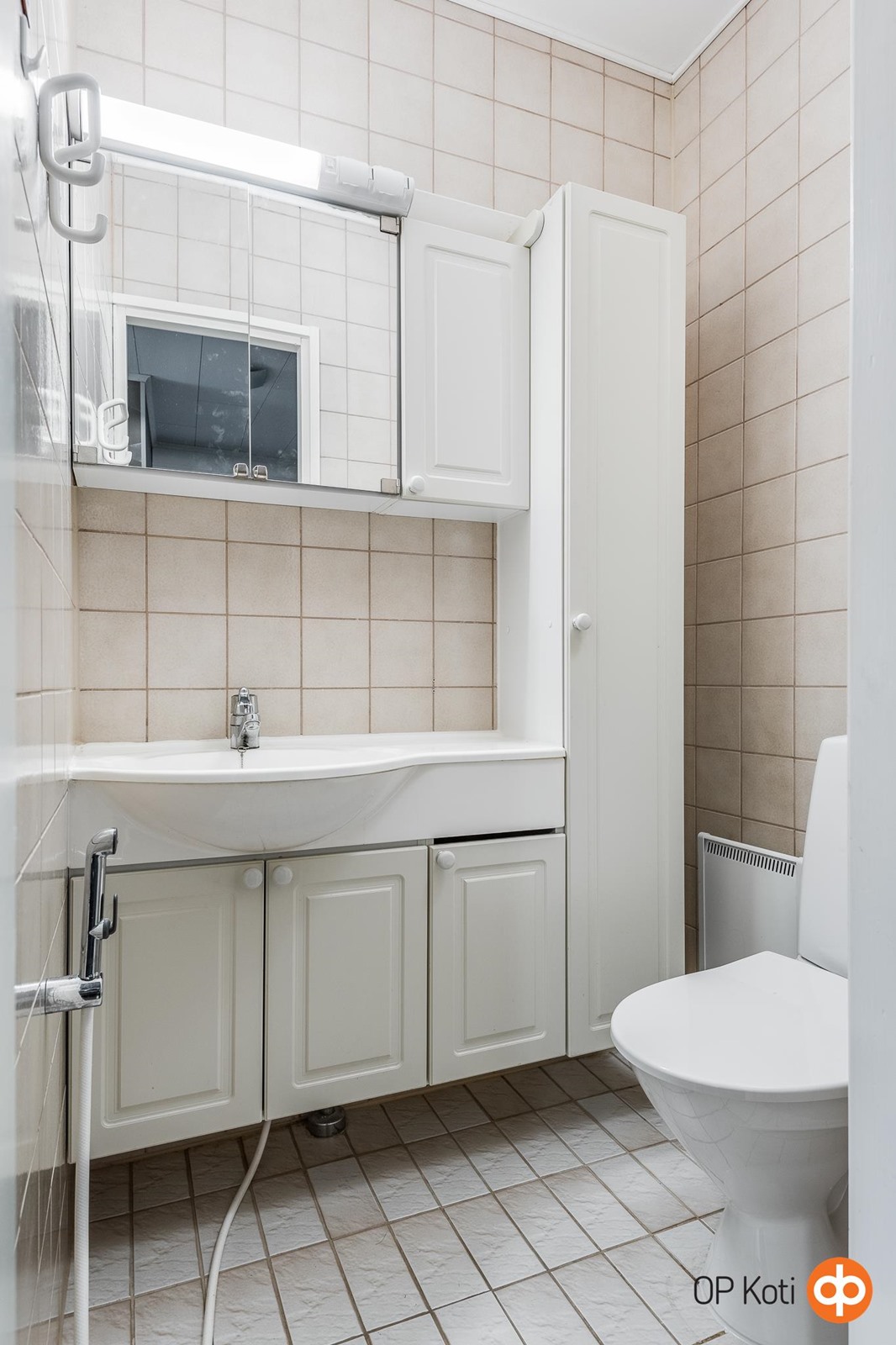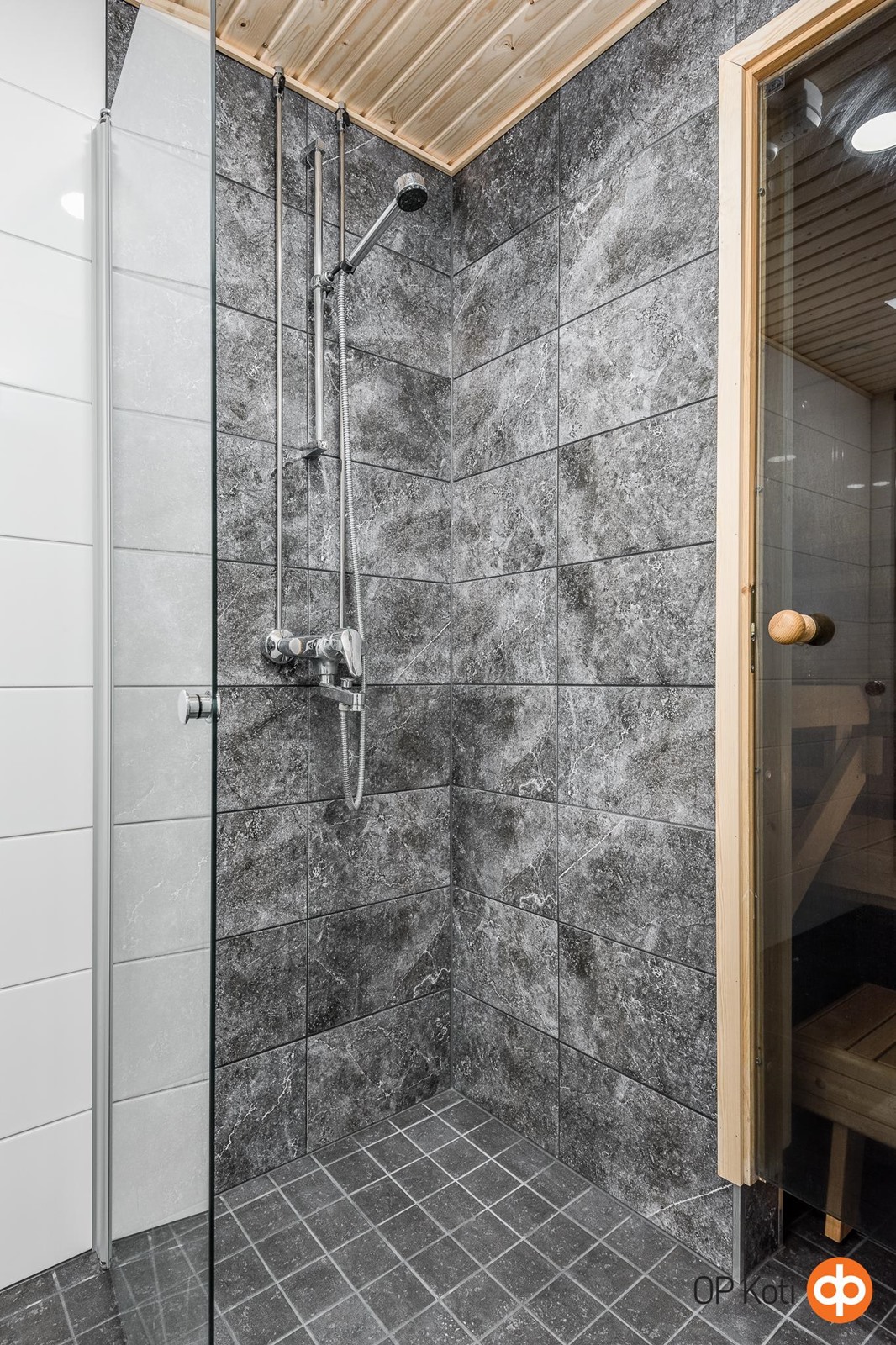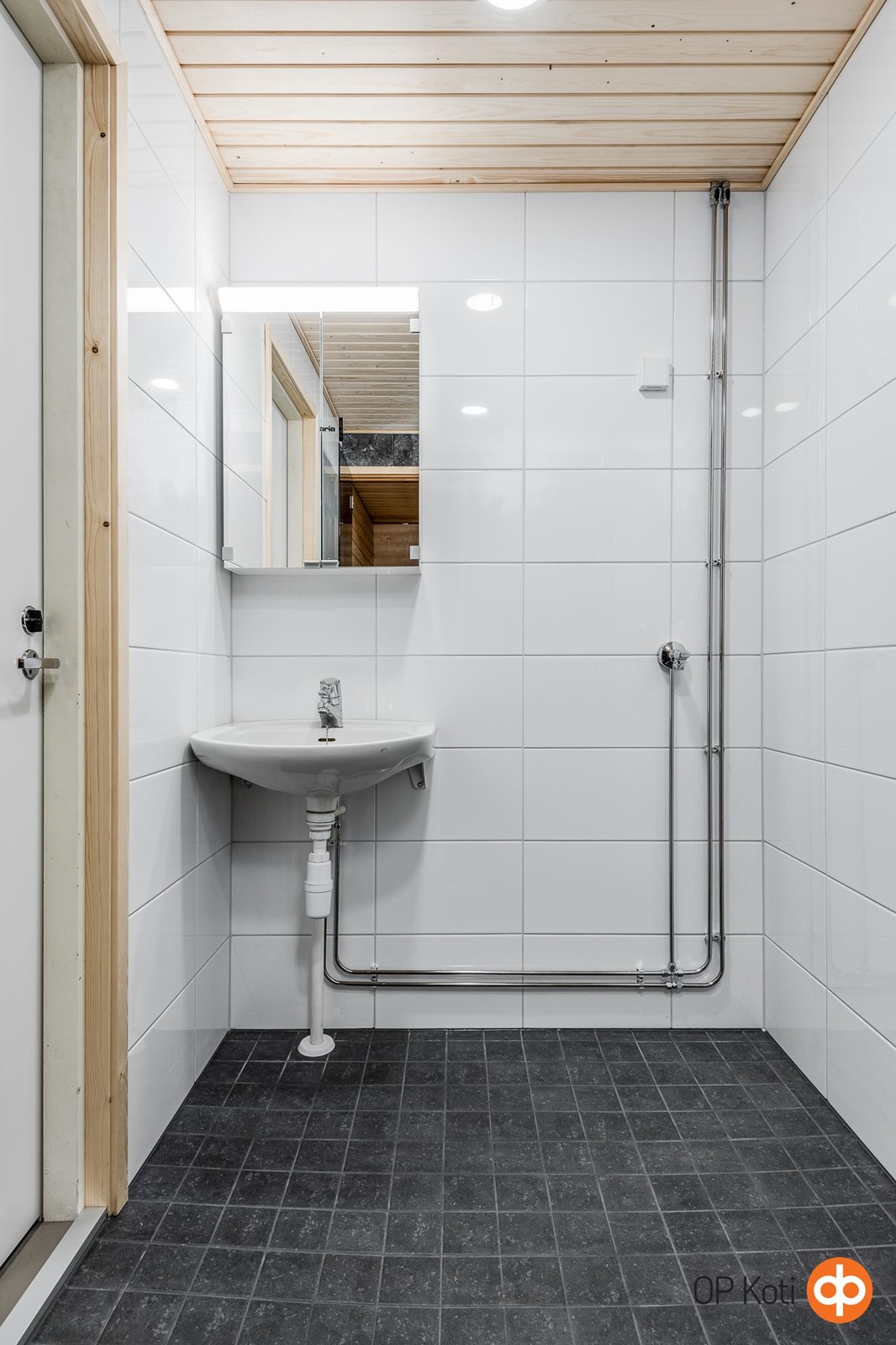 - Sauna, sähkökiuas, kylpyhuone, erillinen wc, suihkuseinä (kääntyvä malli), peilikaappi (kylpyhuoneessa ja wc:ssä), allaskaappi (wc:ssä), pesukoneliitäntä (kylpyhuoneessa), lattialämmitys (kylpyhuoneessa, sähkötoiminen), kiinteät valaisimet. Poistopuhallin kylpyhuoneessa, automaattinen, wifi-säätötoiminto. Saunan ja kylphuoneen remontti on valmistunut maaliskuussa 2023 ja samalla uusittu lämminvesivaraaja.