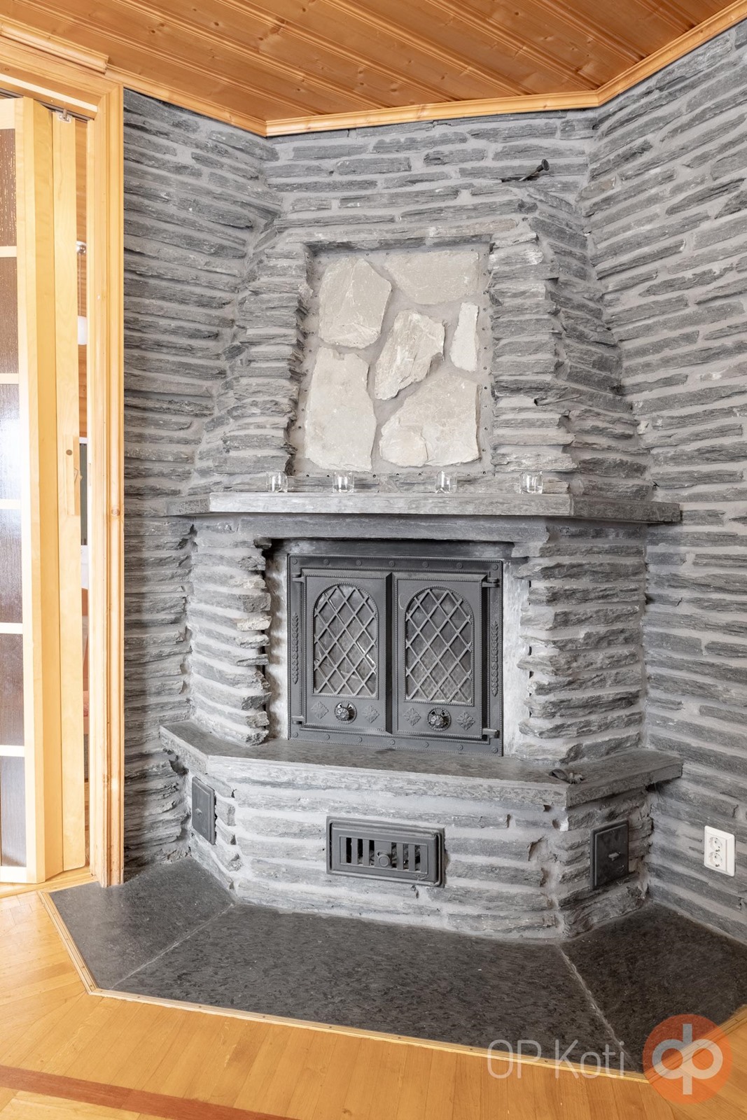 - Puu. Puurunkoinen, tiiliverhoiltu ja hirsipaneloitu.