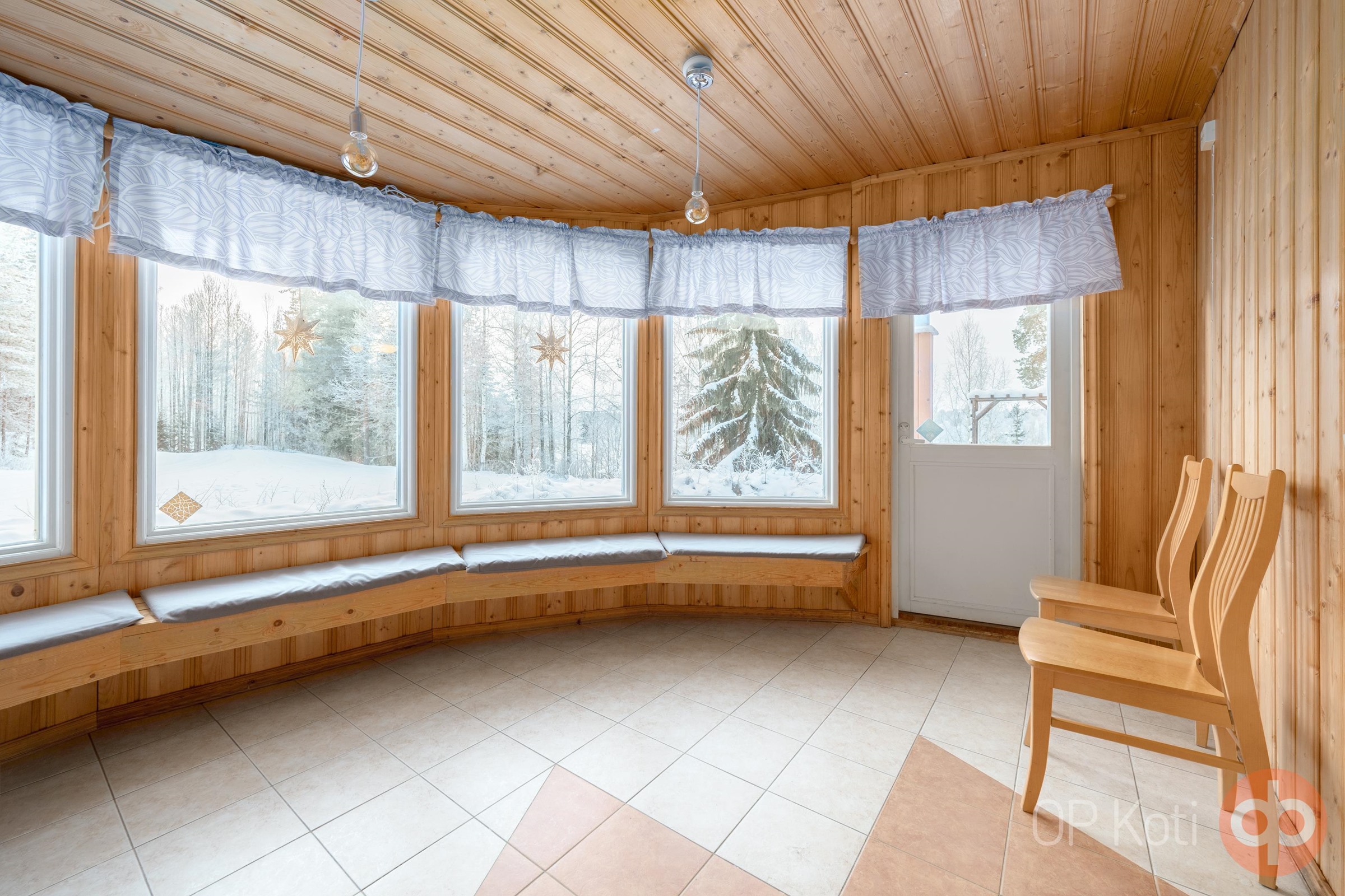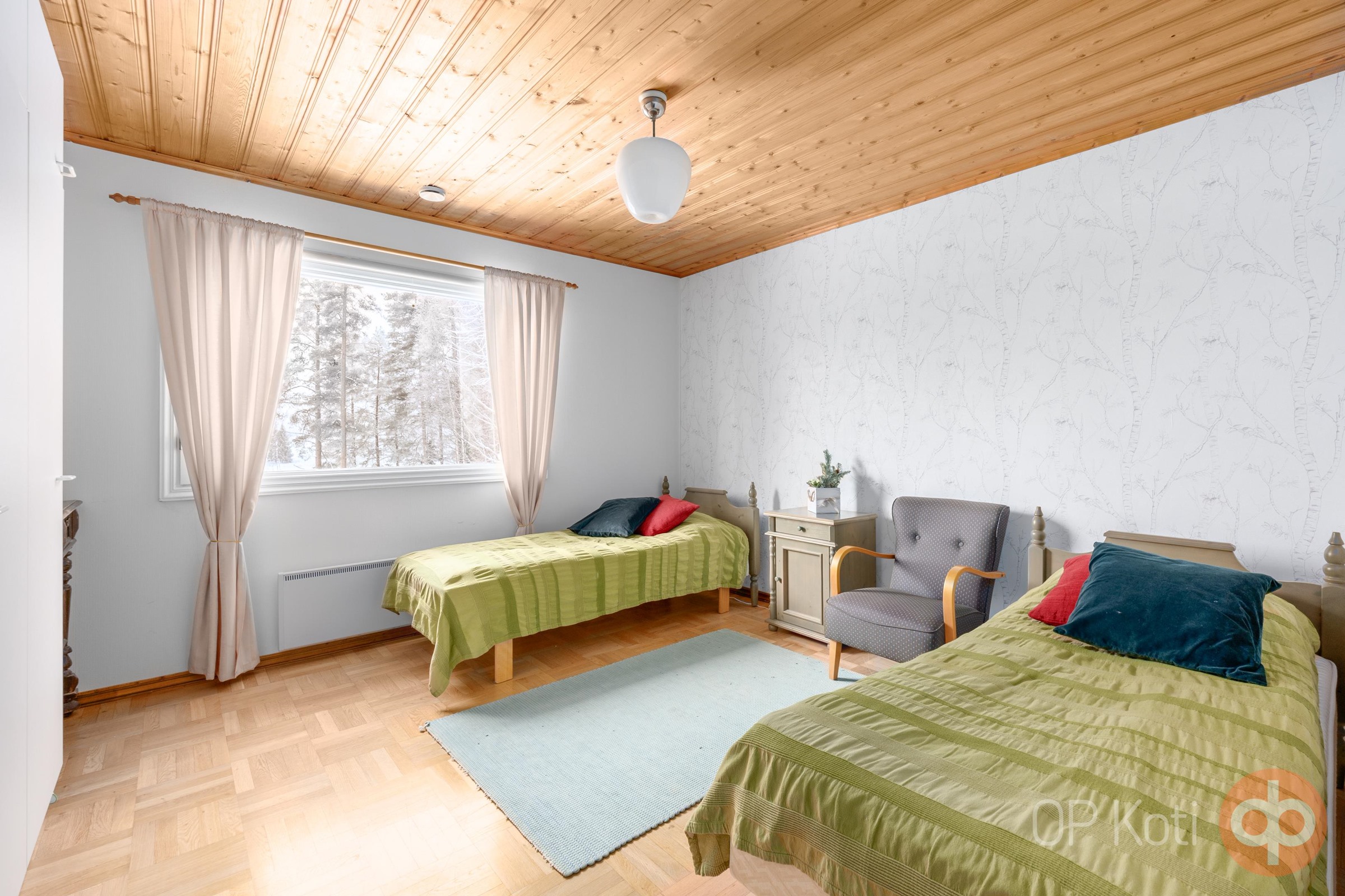 Keittiö: muovimatto / maali. Makuuhuone 1: parketti / tapetti. Makuuhuone 2: parketti / tapetti. Makuuhuone 3: parketti / tapetti. Kodinhoitohuone: laatta / maali. Sauna: laatta / paneeli. Kylpyhuone: laatta / laatta. Eteinen: laatta / maali. Wc: laatta / laatta. sali: parketti / hirsipaneeli. makuuhuone 4: parketti / tapetti. ruokailuhuone: parketti / puolipaneeli + tapetti.