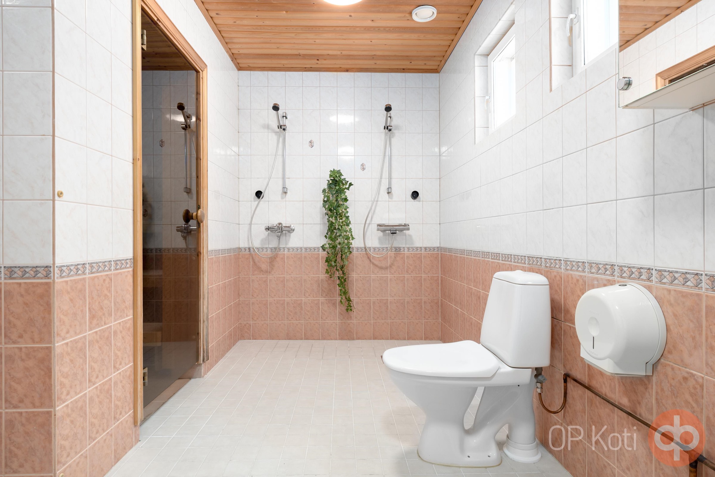 - Sauna, sähkökiuas, kylpyhuone, erillinen wc 3 kpl, suihku 2 kpl, peilit, kaapit, allaskaappi, pesukoneliitäntä, lattialämmitys, kiinteät valaisimet. kylpyhuoneessa on varaus porealtaalle. yksi wc:stä on inva-wc