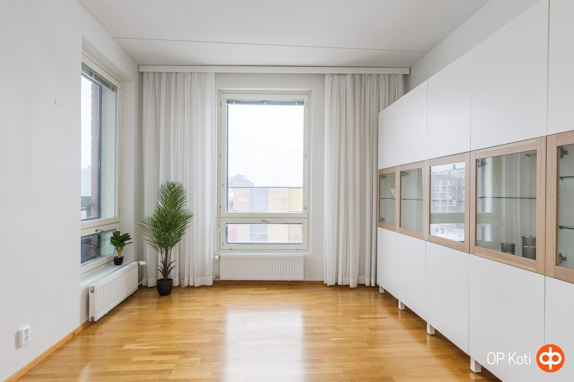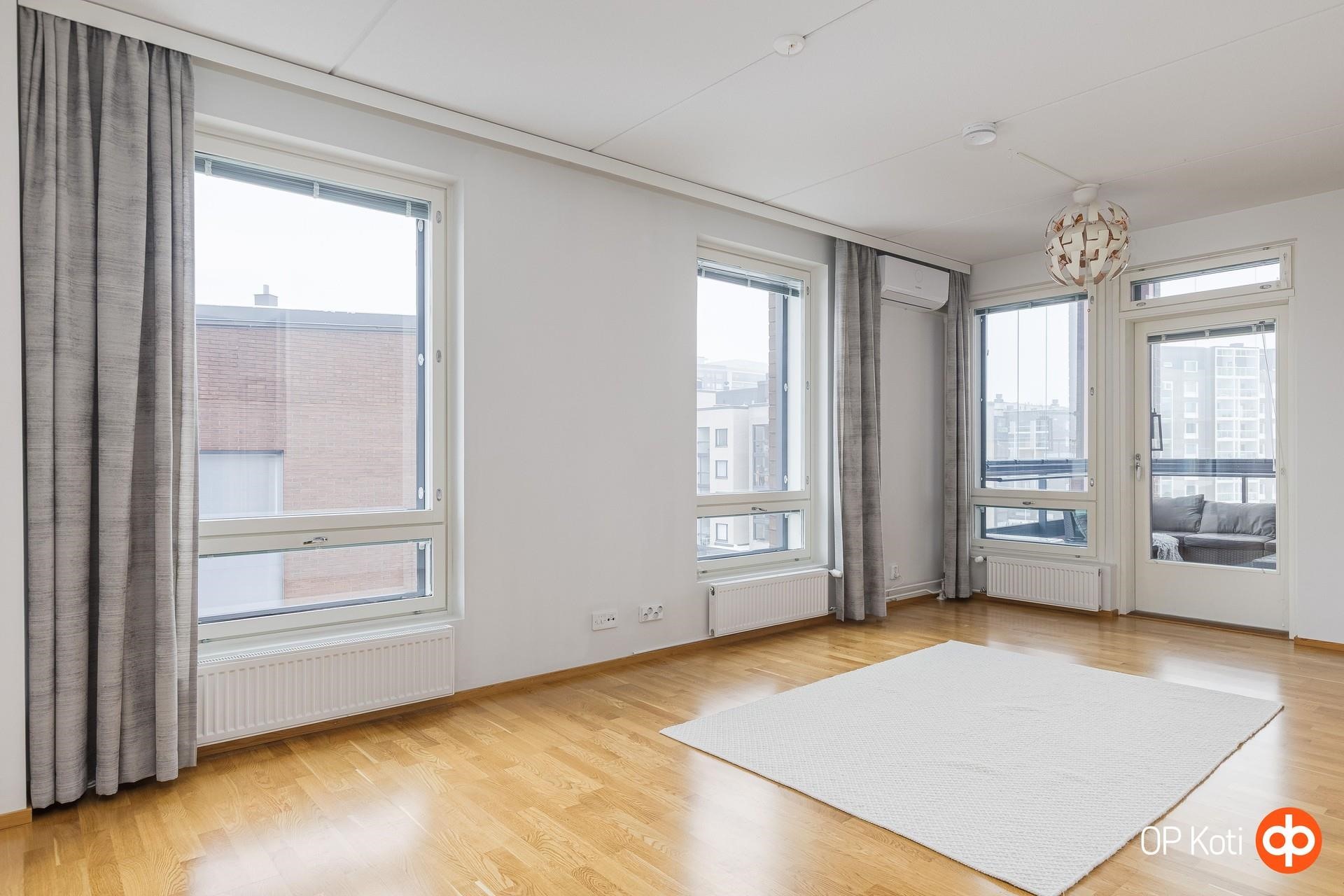 Tämä ylimmän kerroksen valoisa kulmahuoneisto tarjoaa erinomaiset puitteet perheelle tai sujuvaa etätyöarkea arvostavalle. Kolme tilavaa makuuhuonetta, kaksi kylpyhuonetta sekä reilunkokoinen sauna muodostavat toimivan ja kodikkaan kokonaisuuden, jossa arki rullaa mutkattomasti. Viihtyisä ruokailutila on kodin sydän.