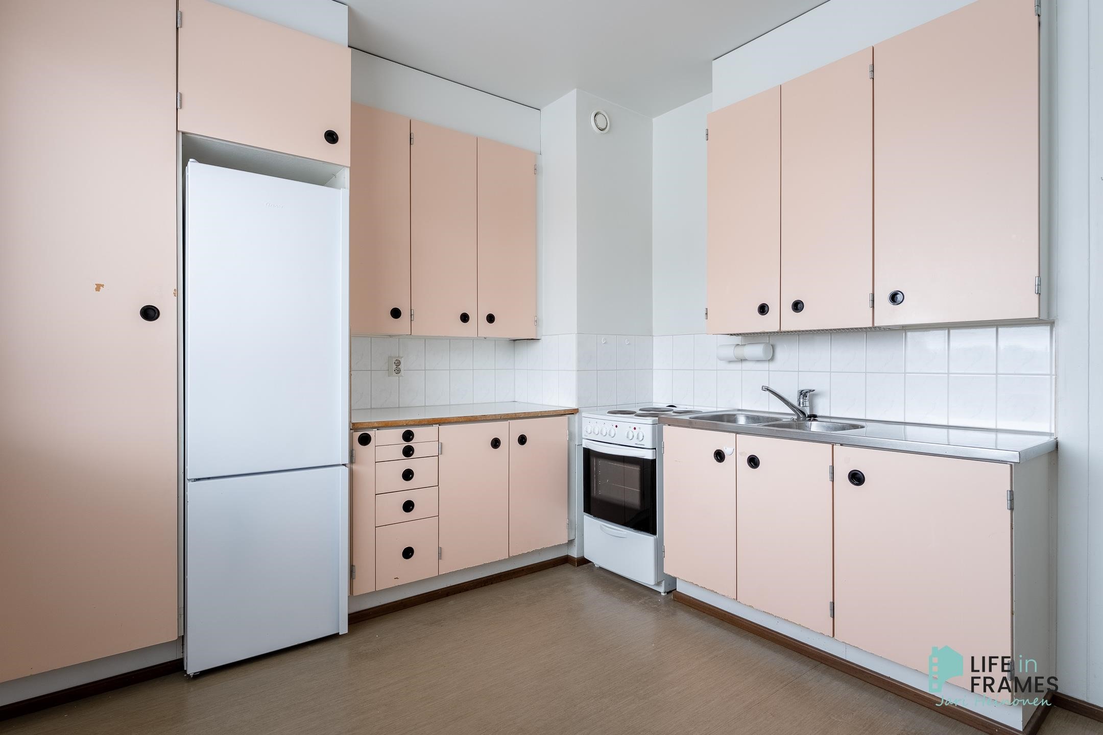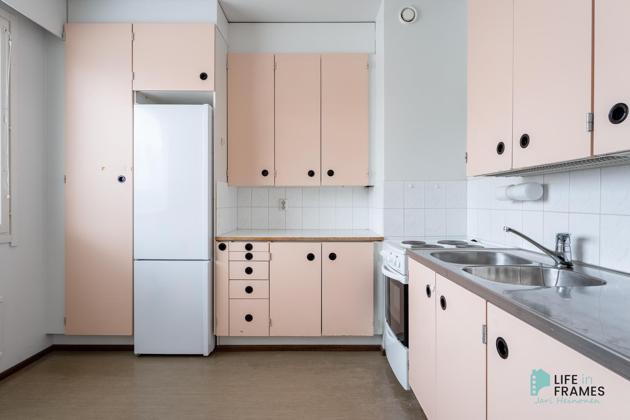 - Jääkaappipakastin (2023), lattialiesi, sähköliesi, kaapistot, kiinteät valaisimet.