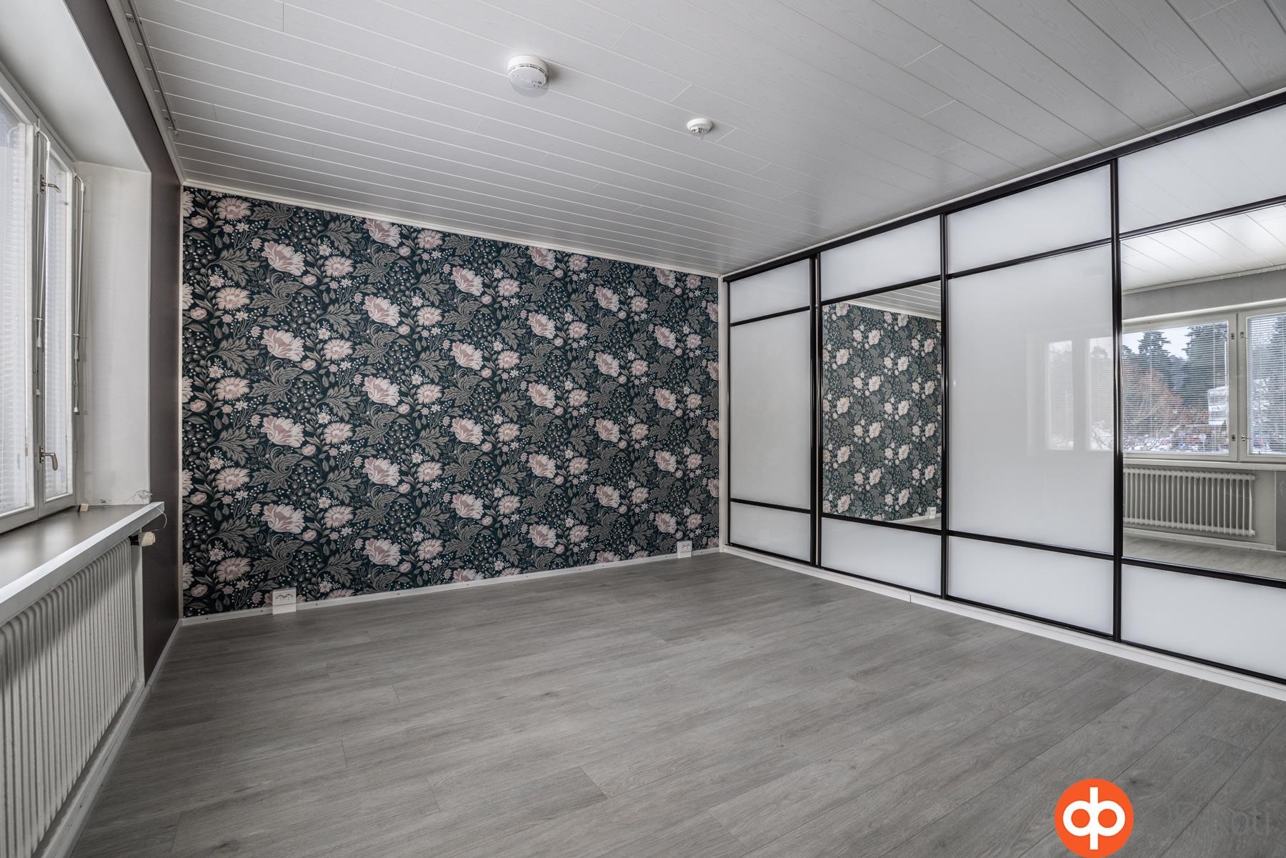 Keittiö: Lattiassa vinyylilankku, seinät tapettia. Huoneet: Lattiassa vinyylilankku, seinät tapetti ja maali. Kylpyhuone: Kauttaaltaan laatoitettu.