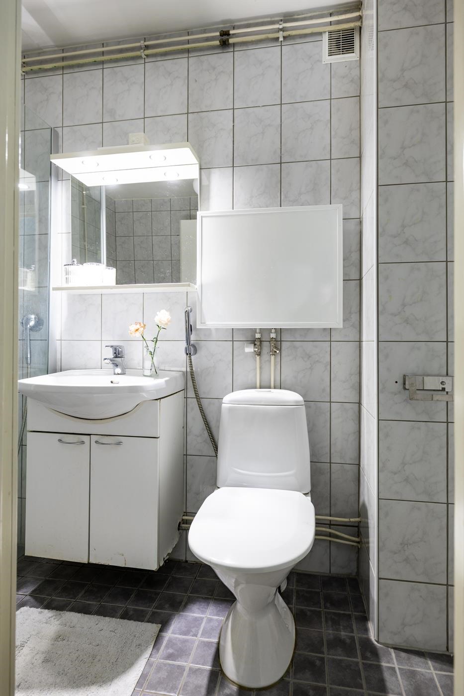 - Kylpyhuoneessa suihku, peilit, allaskaappi, pesukoneliitäntä, kiinteät valaisimet.