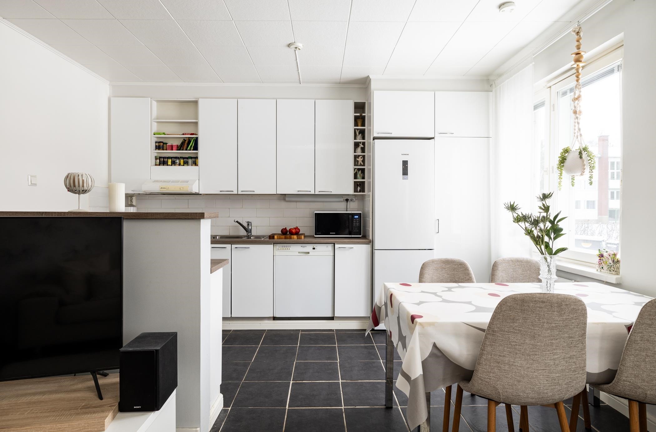 Vapatumassa 1. kerroksen läpitalon tilava huoneisto suositulla ja rauhallisella Rantaperkiö/Härmälän alueella. Tämä kivapohjainen ja valoisa kaksio tarjoaa toimivan pohjaratkaisun: avokeittiö yhdistyy viihtyisään olohuoneeseen ja makuuhuone on mukavan tilava.