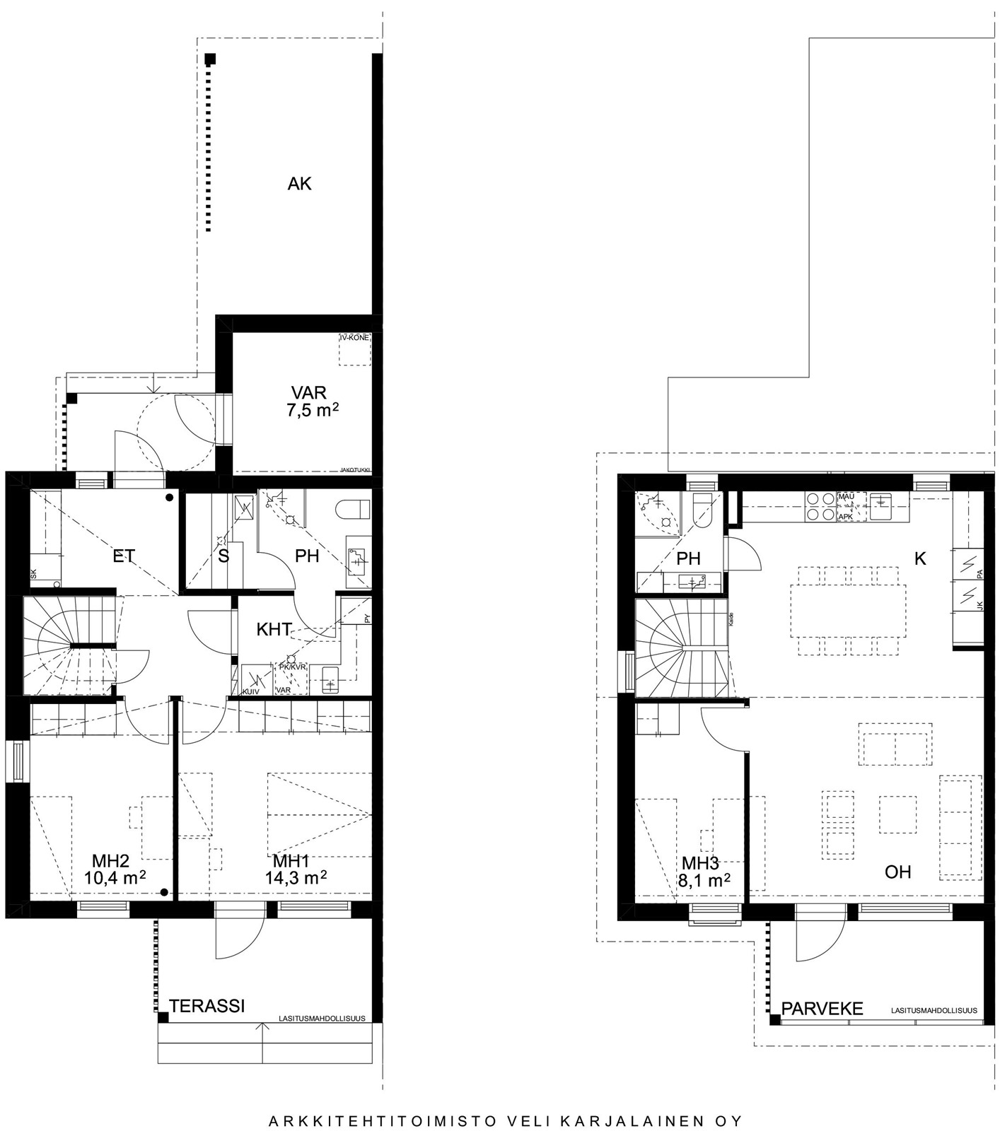 - 7,5 m2Muihin tiloihin luetaan ulkovarasto.