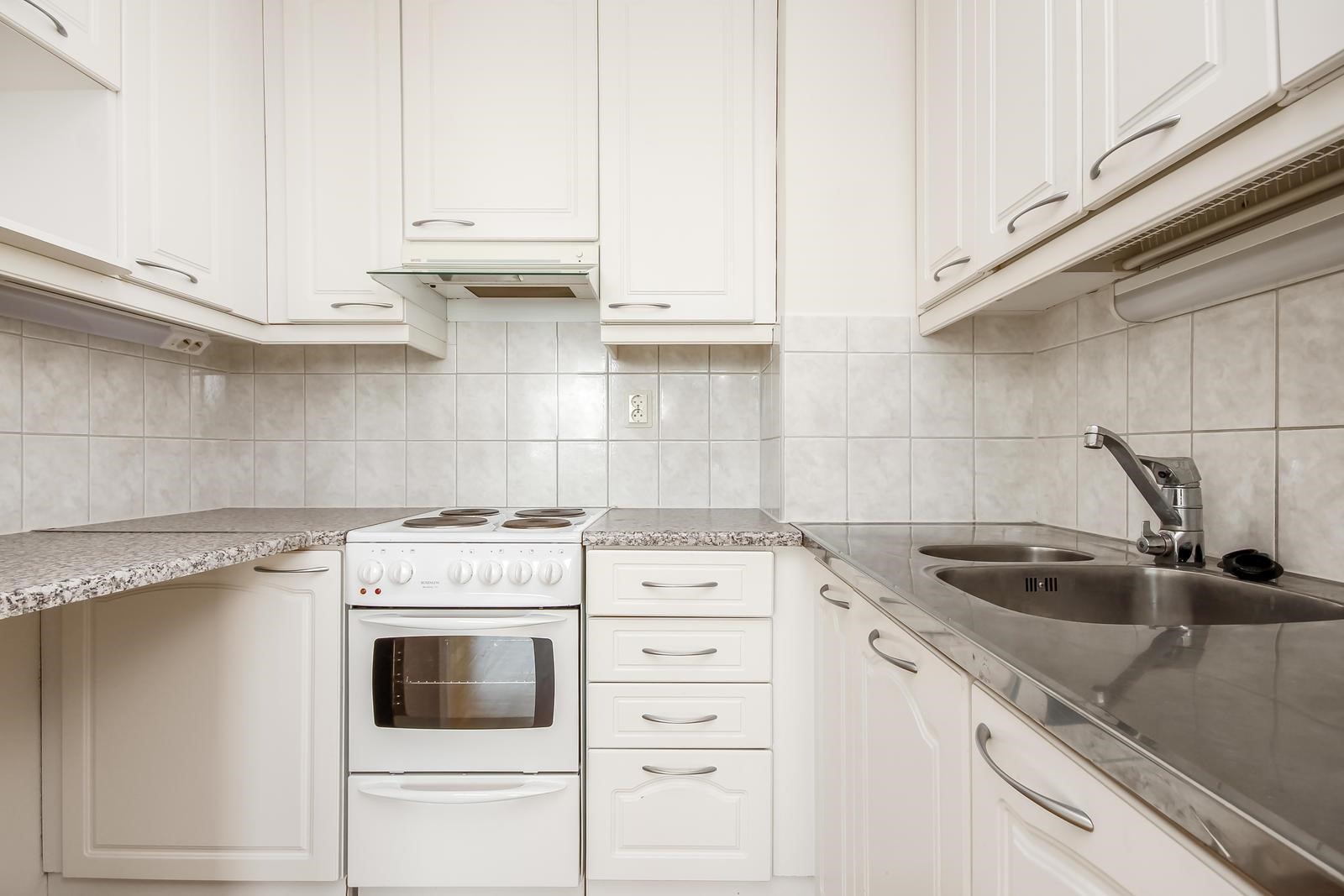 - Jääkaappipakastin, keraaminen liesi, liesituuletin, astianpesukone, kaapistot, kiinteät valaisimet.