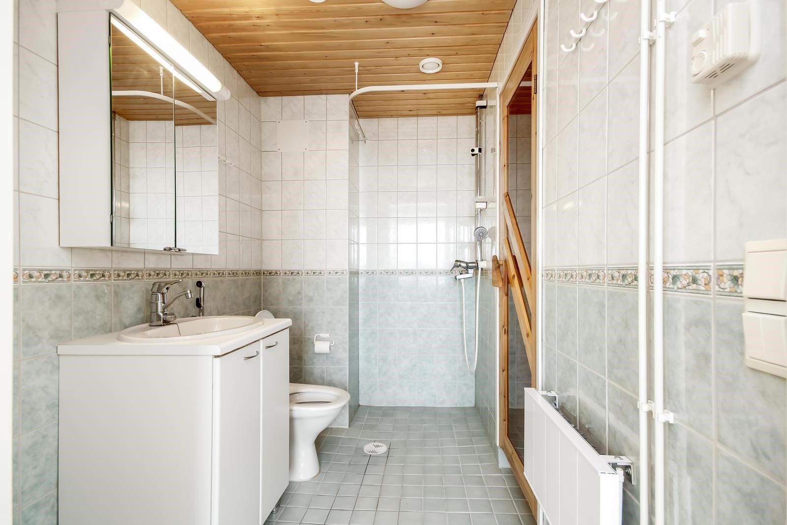 - Sauna, sähkökiuas, kylpyhuone, suihku, peilikaappi, allaskaappi, pesukoneliitäntä, lattialämmitys Huoneistokohtaisella sähköllä mukavuuslämmitys, kiinteät valaisimet.