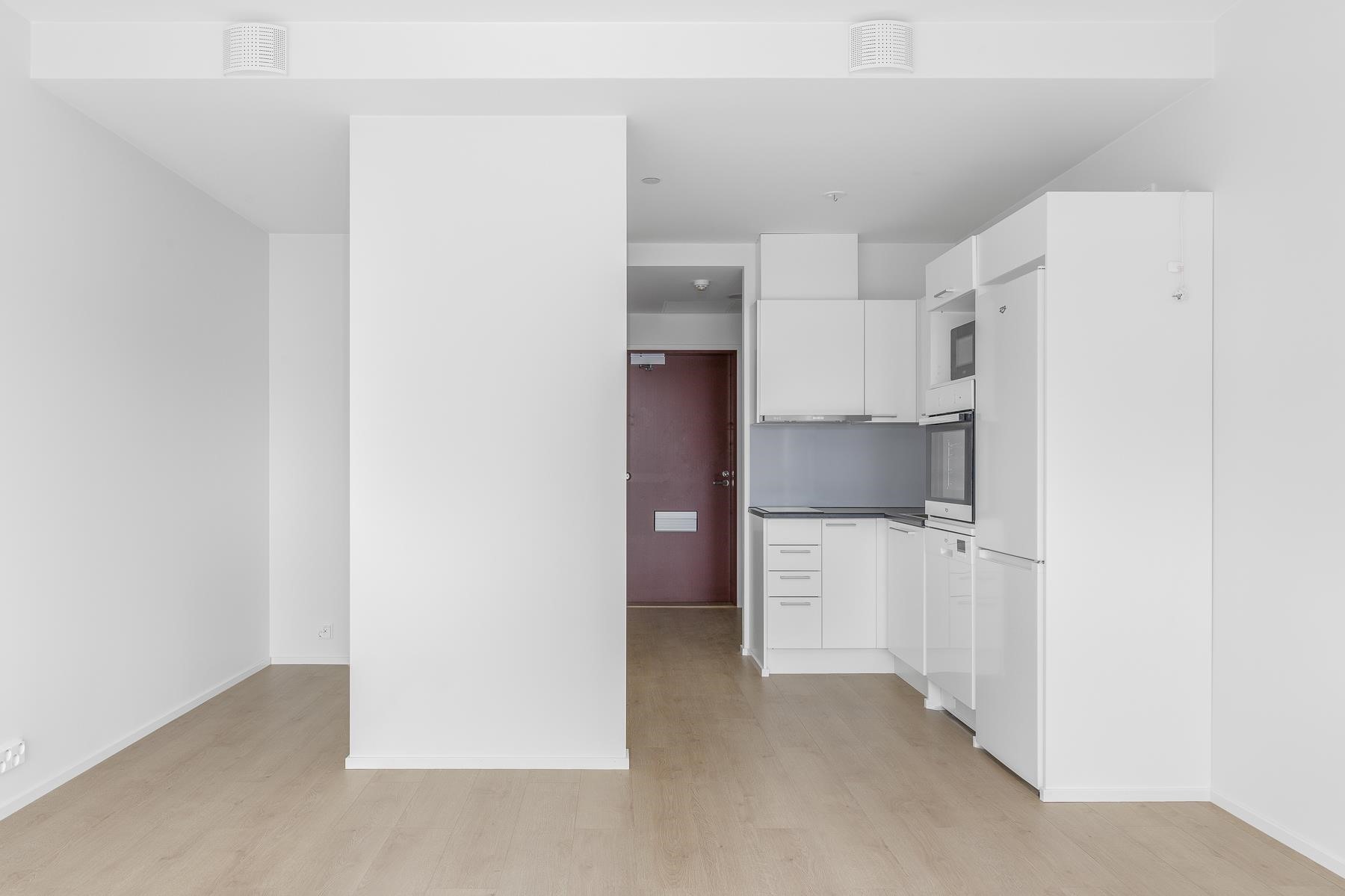- Keittiön varusteet: Kaapistot valkoinen Olive- keittiö. UPO kodinkoneet; tasoon integroitu keraaminen liesitaso, kalusteeseen integroitu erillisuuni, kalusteeseen integroitu astianpesukone, erillinen mikroaaltouuni, täysikorkea jääkaappipakastin yhdistelmä, liesituuletin Franke. Keittiön työtaso on musta mdf -taso, ja kaapistojen kalusteväli on valkoinen alumiinilevy.