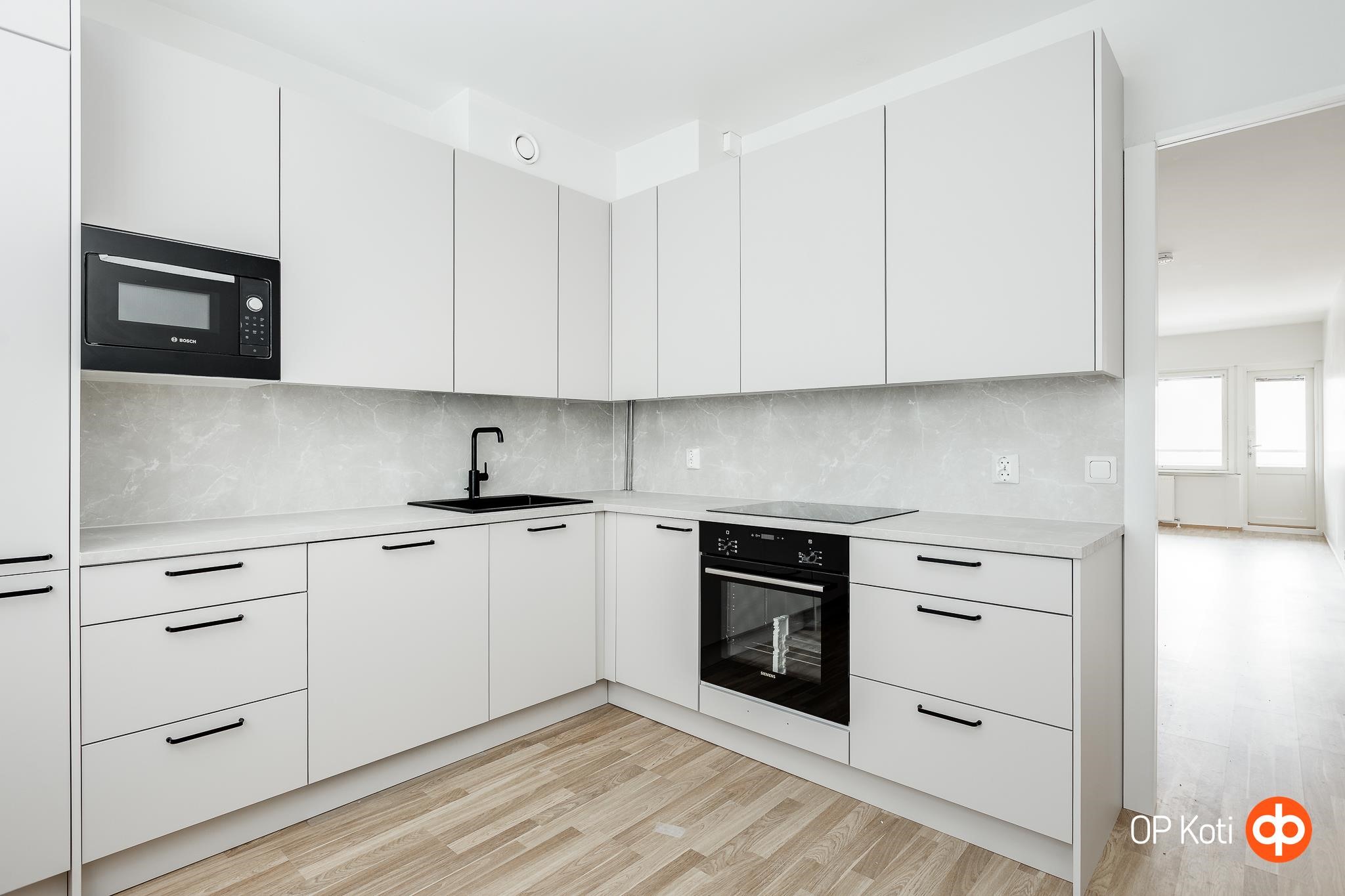 Tämä juuri remontoitu huoneisto tarjoaa ihanteellisen kodin niin pariskunnalle kuin pienelle perheellekin. Asunnon valoisa ja avara pohjaratkaisu tekee siitä miellyttävän asua. Iso vaatehuone on kätevästi piilotettu isoilla liukuovilla eteisessä. Keittiö on varustettu uusilla ja laadukkailla kodinkoneilla, mikä tekee ruoanlaitosta nautinnollista. Makuuhuoneet ovat tilavia ja tarjoavat runsaasti säilytystilaa. Lasitettu parveke tuo lisätilaa ja tarjoaa rauhallisen paikan nauttia kahvikupillisesta tai lueskella kirjaa.