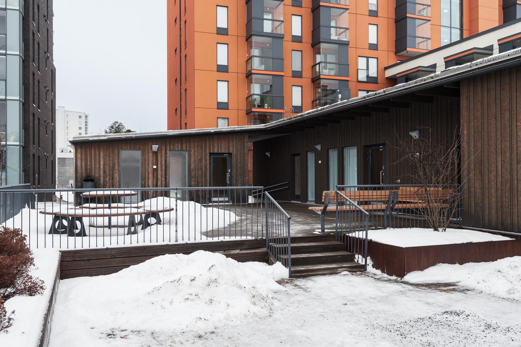 - Sauna, vinttikomerot, urheiluvälinevarasto, pyörävarasto, väestösuoja, kaapeli-TV, tietoliikenneyhteys