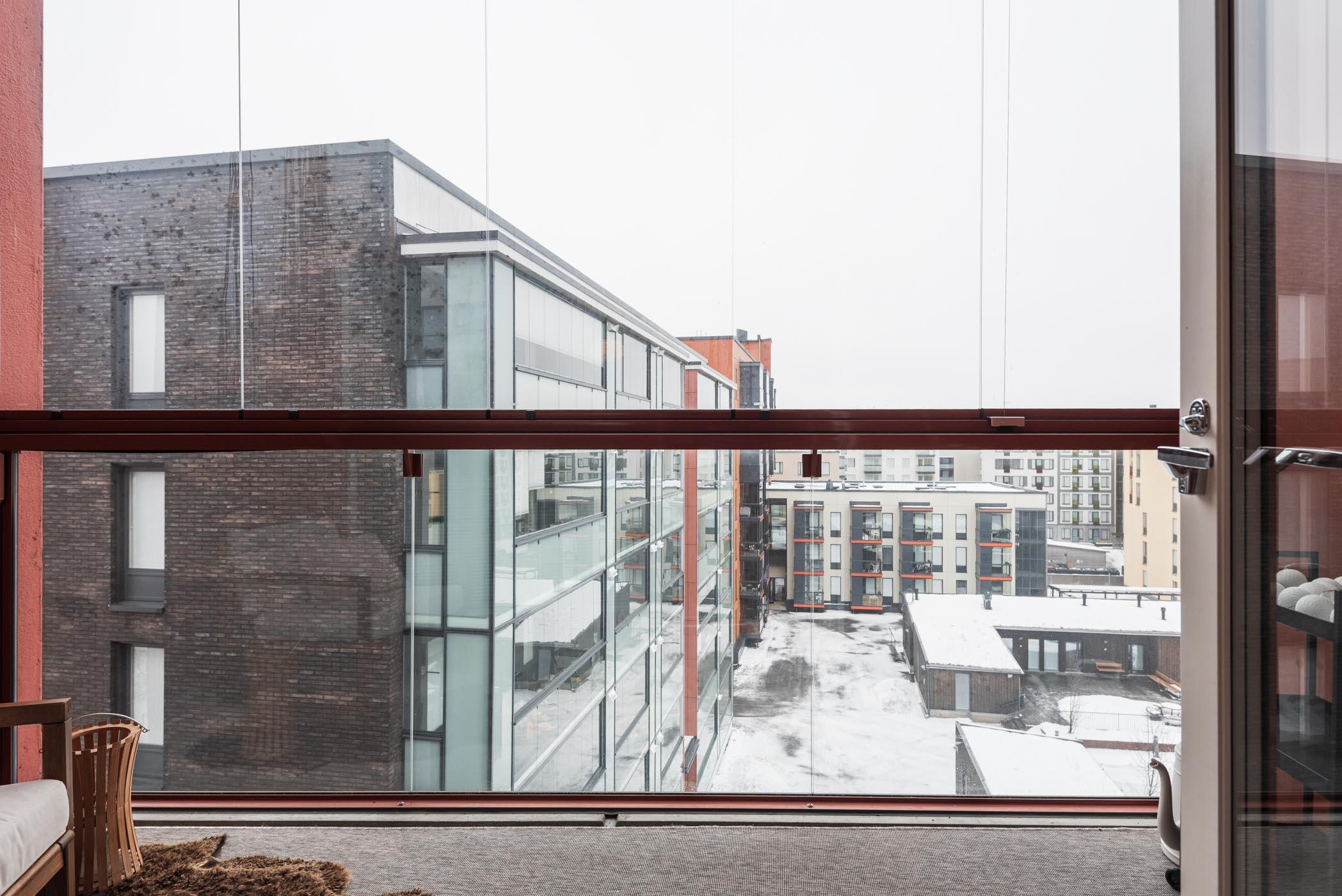 - Lasitettu parveke sisäpihan suuntaan.
