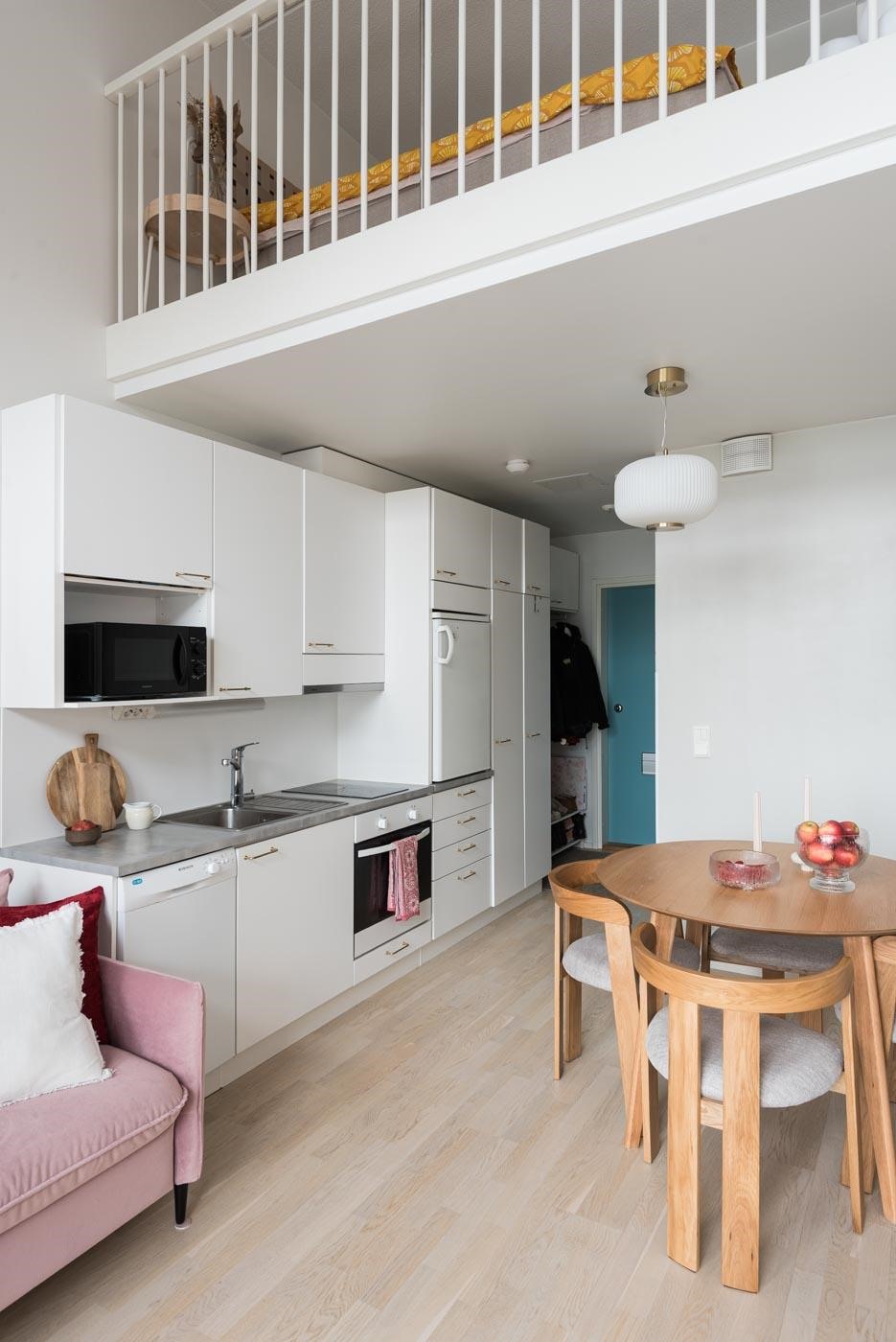 Huikea yli 4 metrin huonekorkeus ja runsaasti ikkunapinta-alaa! Seuraavalle asukkaalle vapautumassa neliöitään suuremman tuntuinen yksiö, missä myös kunnon parvi nukkumiselle. Parvella tilaa myös kaapistolle. Kotiin asennettu ilmalämpöpumppu helpottaa kesähelteillä. Asunnon pohja on sujuvaksi suunniteltu, eikä hukkatilaa ole.