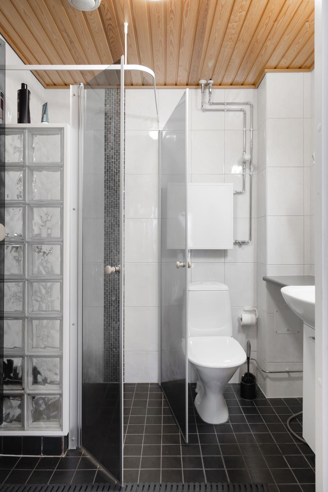 - Sauna, sähkökiuas, kylpyhuone, erillinen wc, suihkukaappi, allaskaappi, pesukoneliitäntä, lattialämmitys, kiinteät valaisimet.