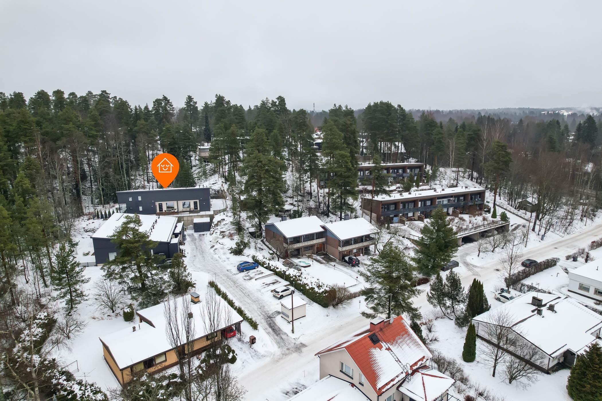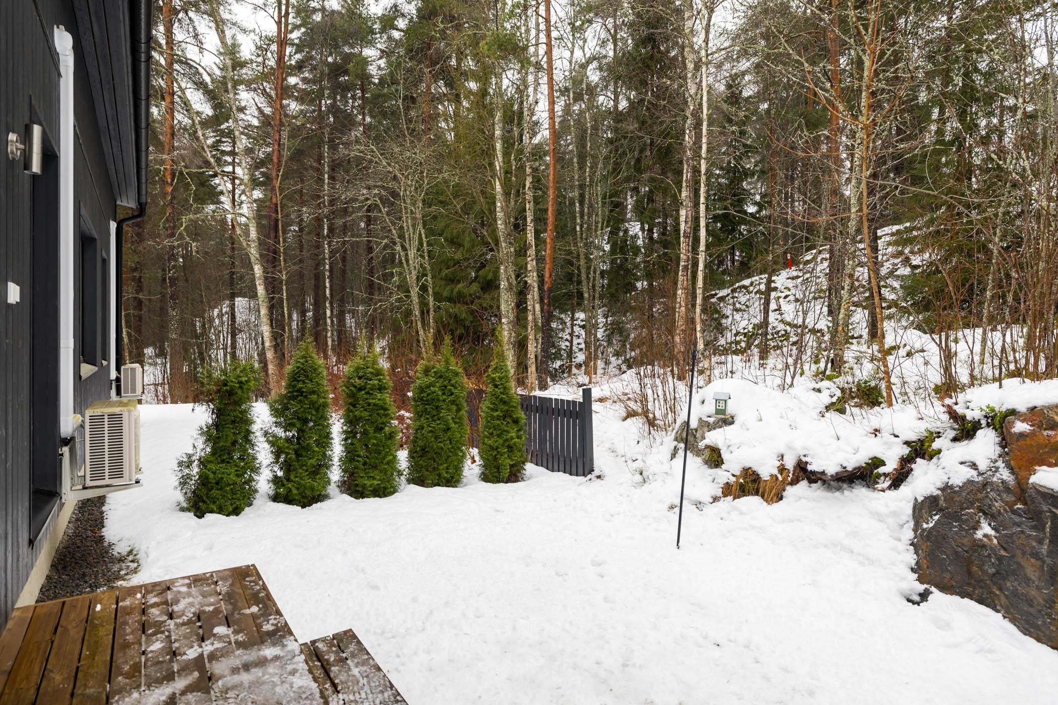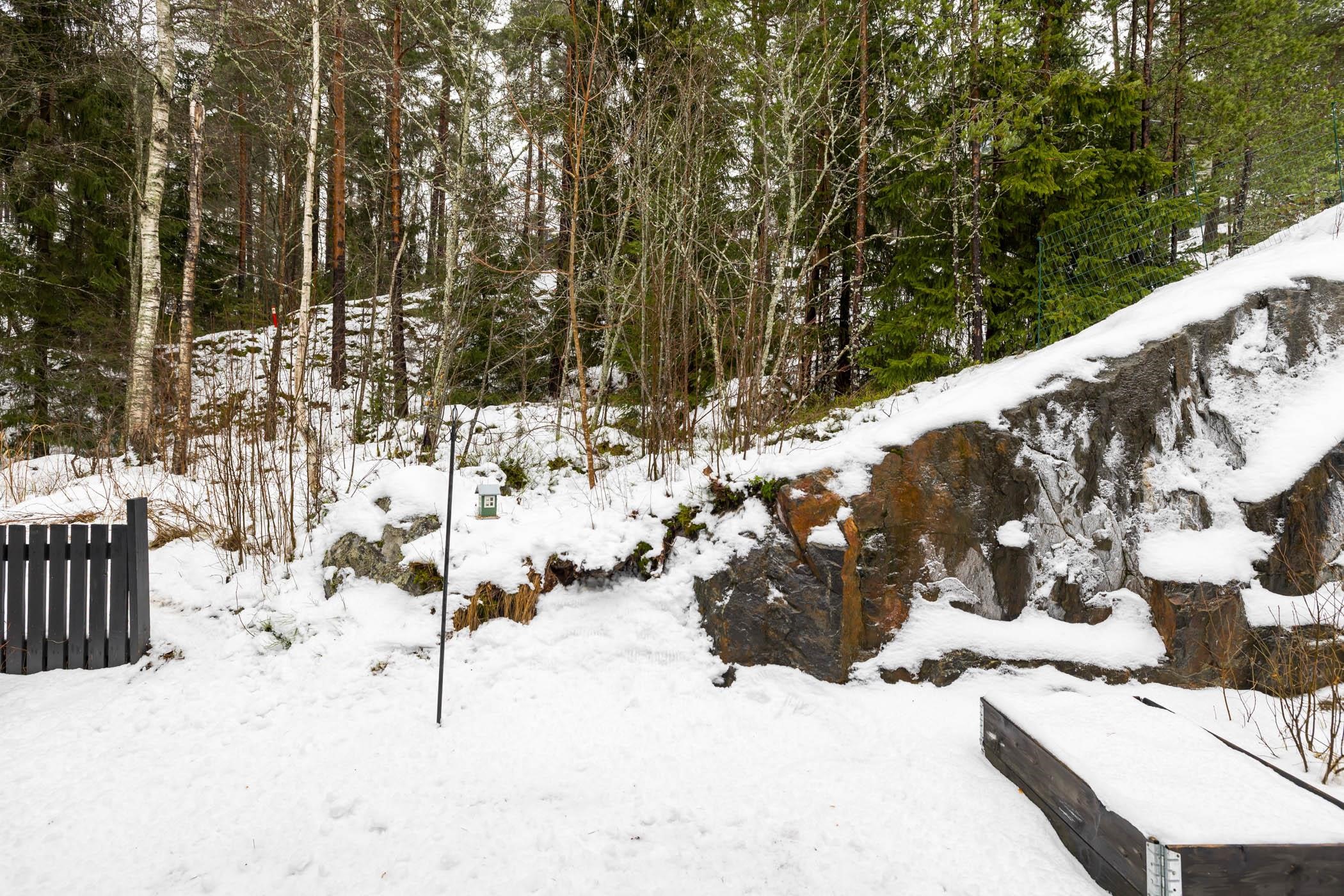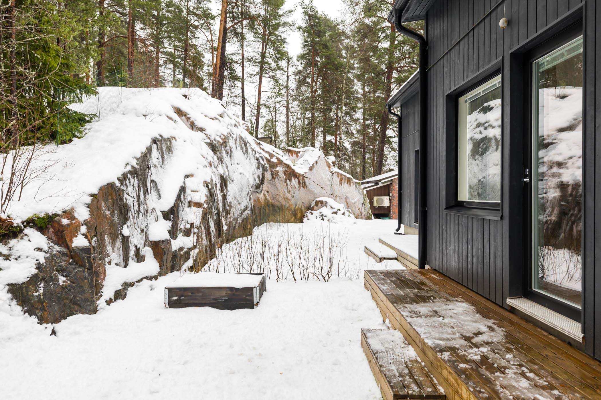 Säilytystilaa ei ole säästelty: eteisen liukuvaatekaapisto,makuuhuoneiden vaatekaapit ja tilava ulkovarasto tekevät arjesta sujuvaa. Etelän suuntaiselta terassilta avautuvat upeat näkymät, ja takapihan kalliomaisemat kutsuvat nauttimaan ulkoilmasta.