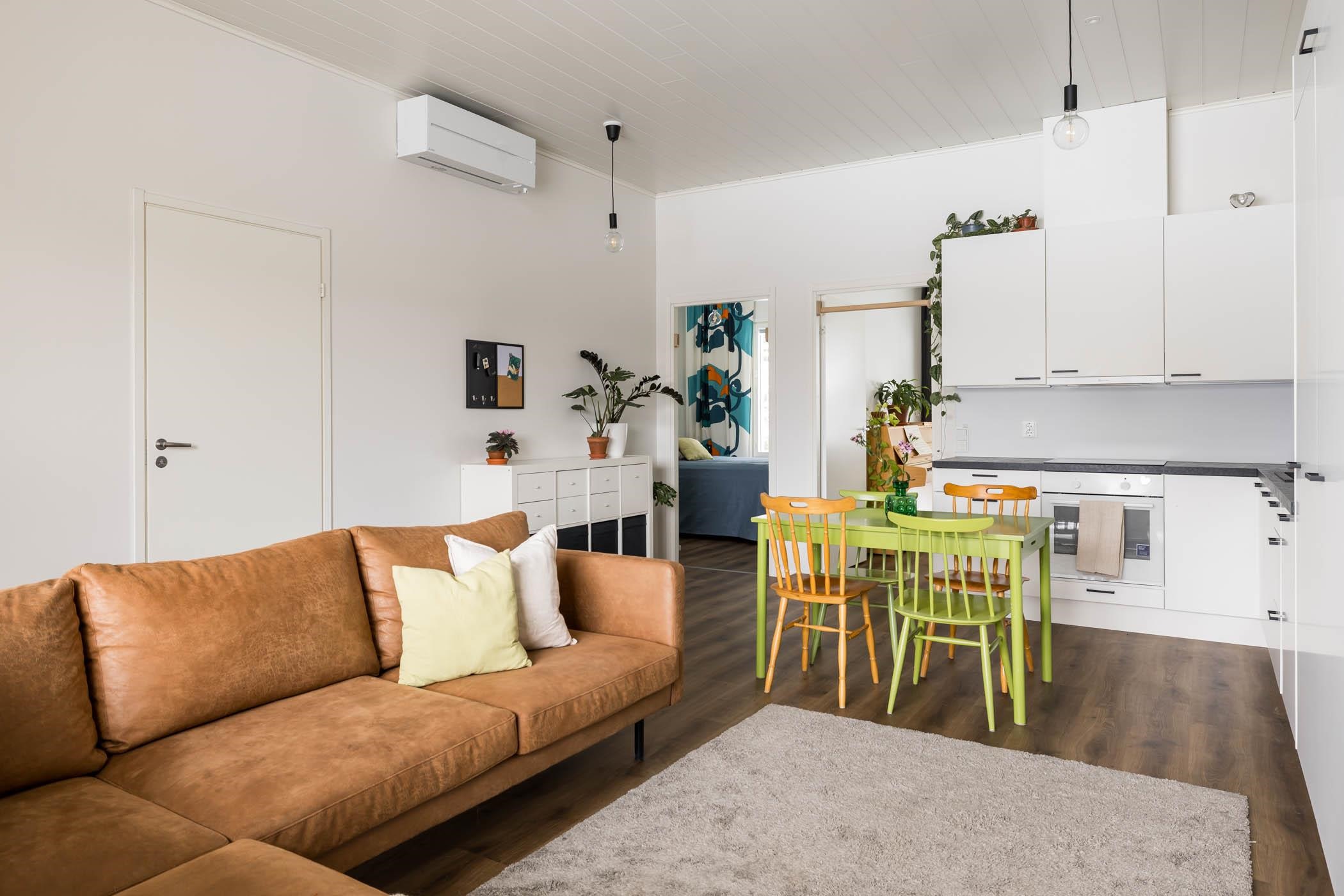 Asunnon lämmityksen hoitaa poistoilmalämpöpumppu vesikiertoisella lattialämmityksellä, ja ilmalämpöpumppu pitää lämmityskulut kurissa vuoden ympäri. Oman autopaikan ansiosta liikkuminen on vaivatonta.