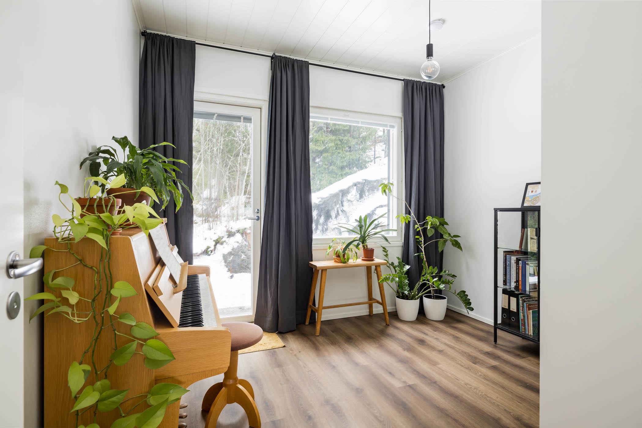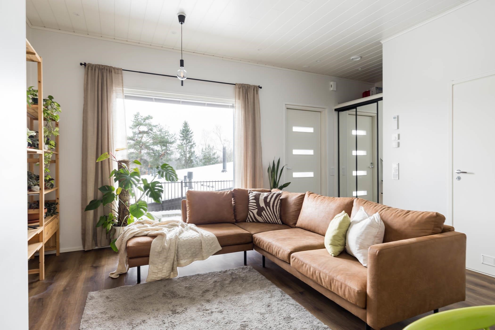 Suuret ikkunat tulvivat valoa tähän avaraan kotiin, jossa jokainen yksityiskohta on tarkkaan harkittu.