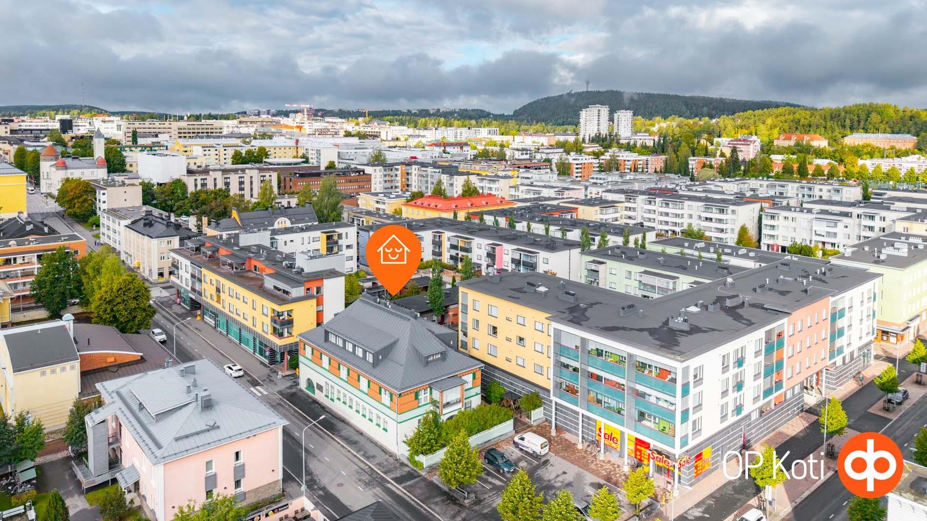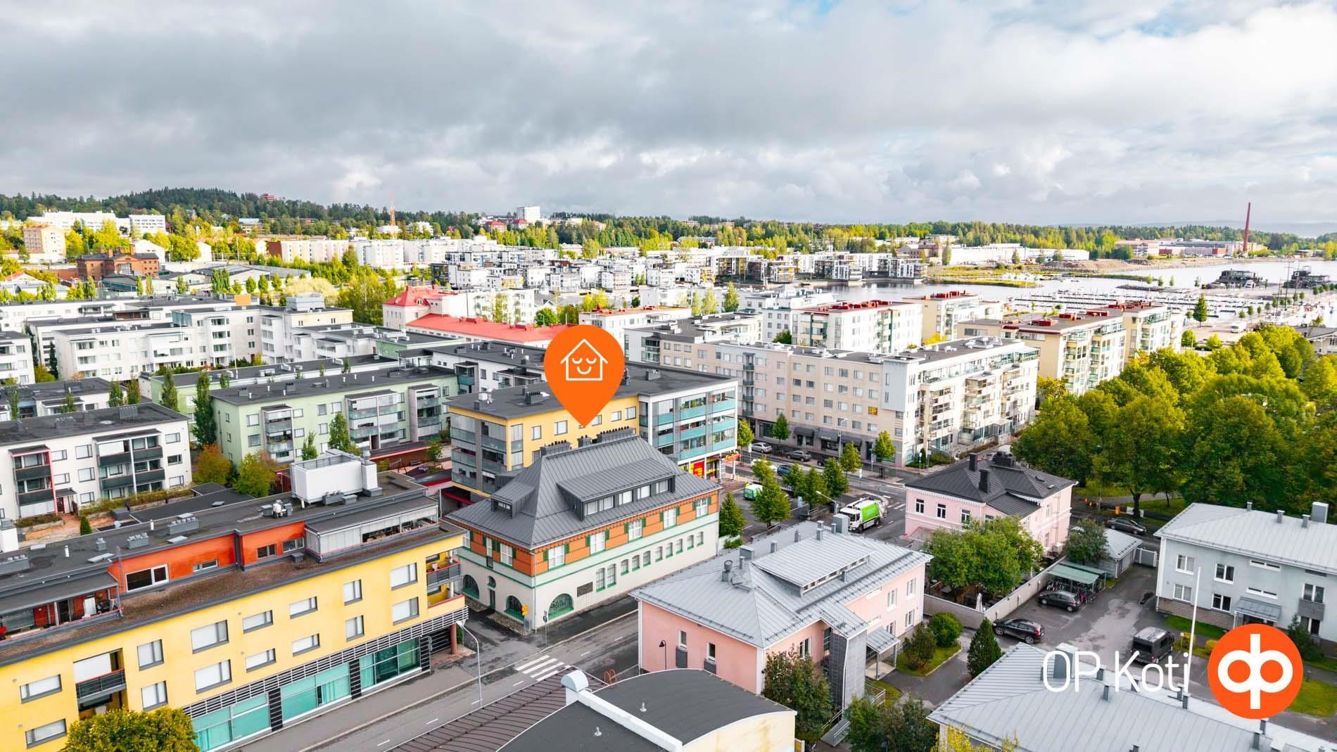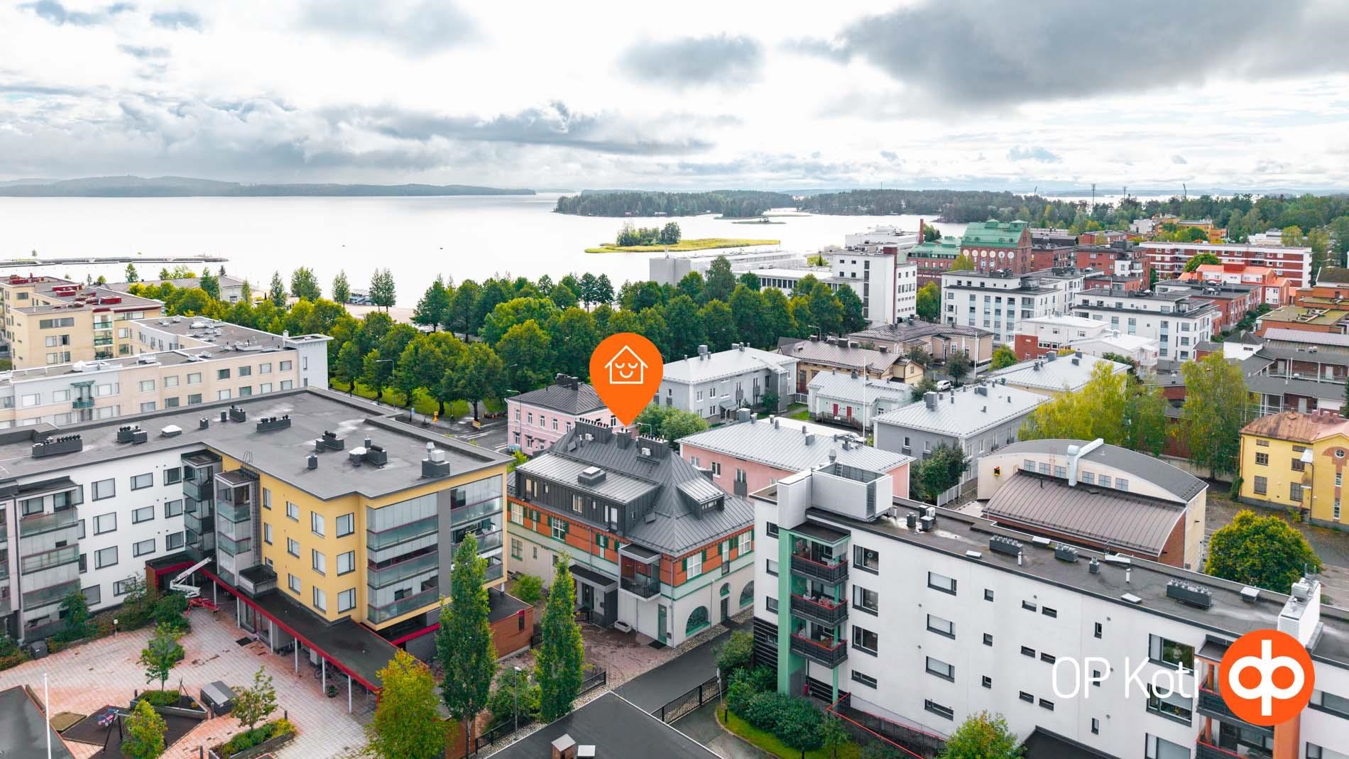 Taloyhtiö sijaitsee upealla paikalla, kivenheiton päässä matkustajasatamasta vilkkaan Kauppakadun varrella.