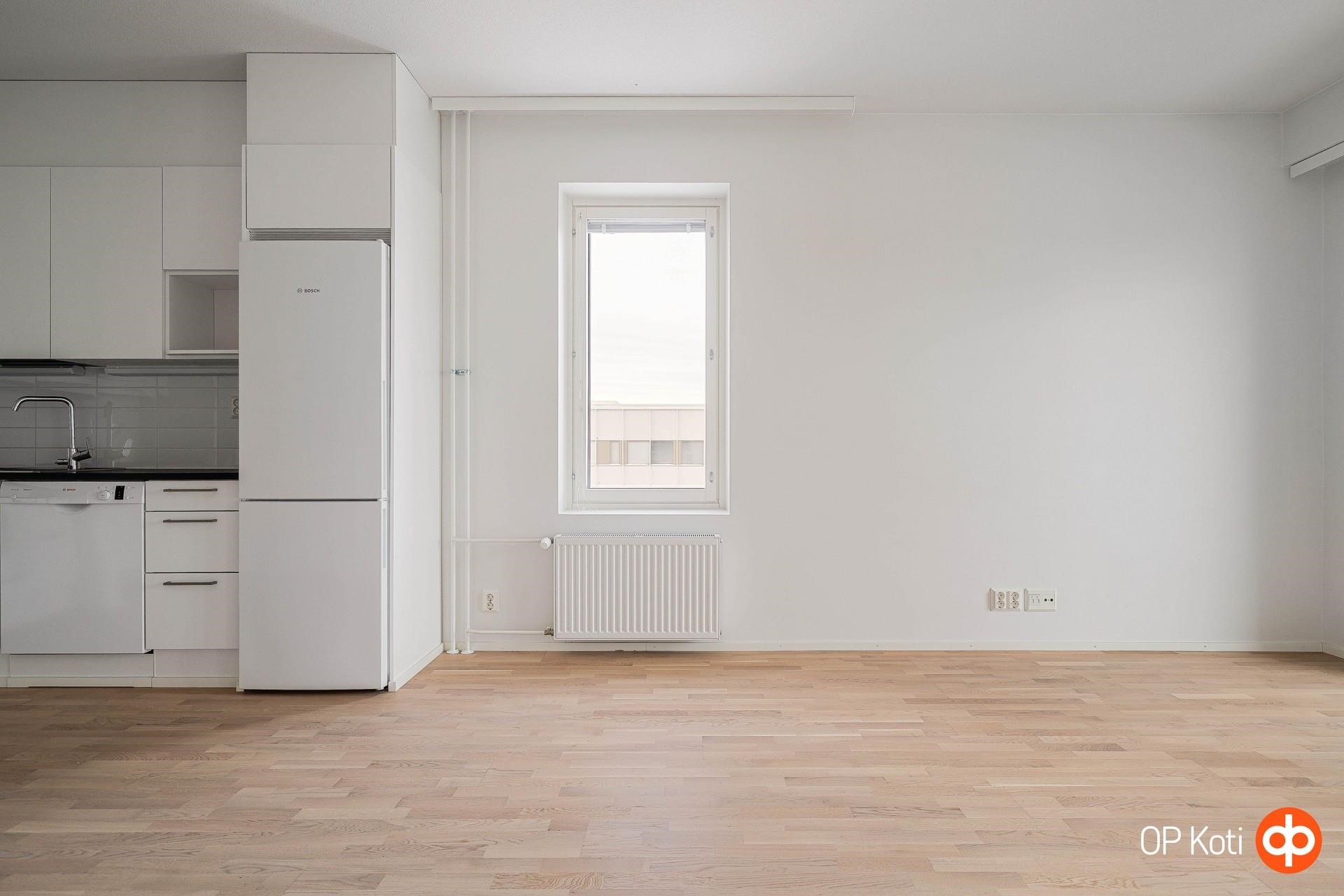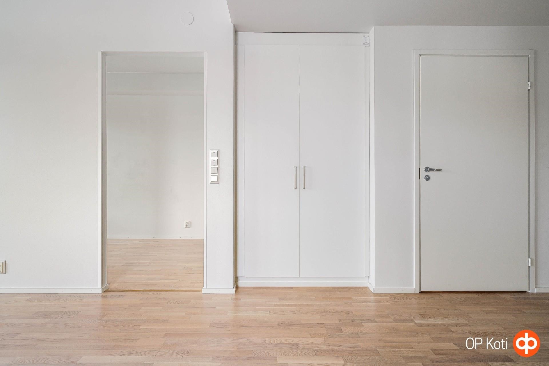 Keittiö: Seinäpinnat valkea maali, lattiat tammiparkettia. Olohuone: Seinäpinnat valkea maali, lattiat tammiparkettia. Makuuhuone 1: Seinäpinnat valkea maali, lattiat tammiparkettia. Kylpyhuone: Laatoitettu.