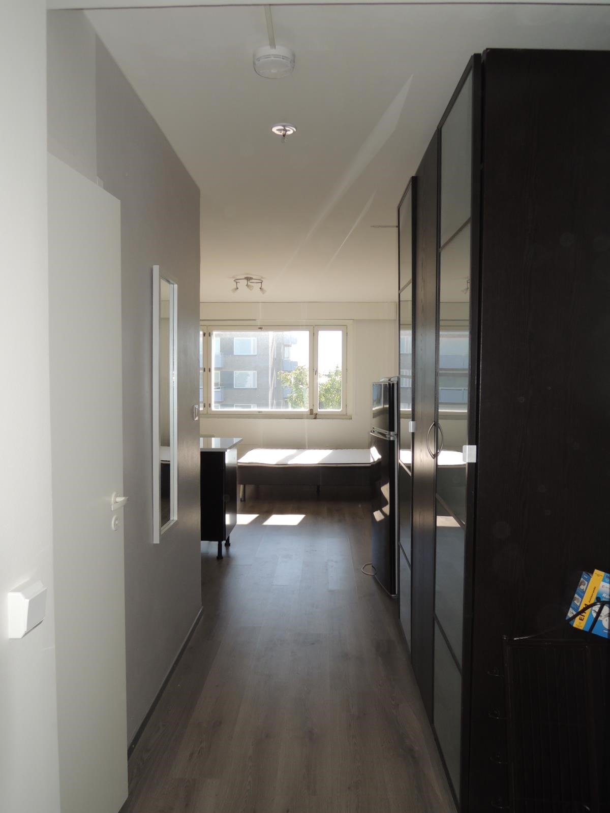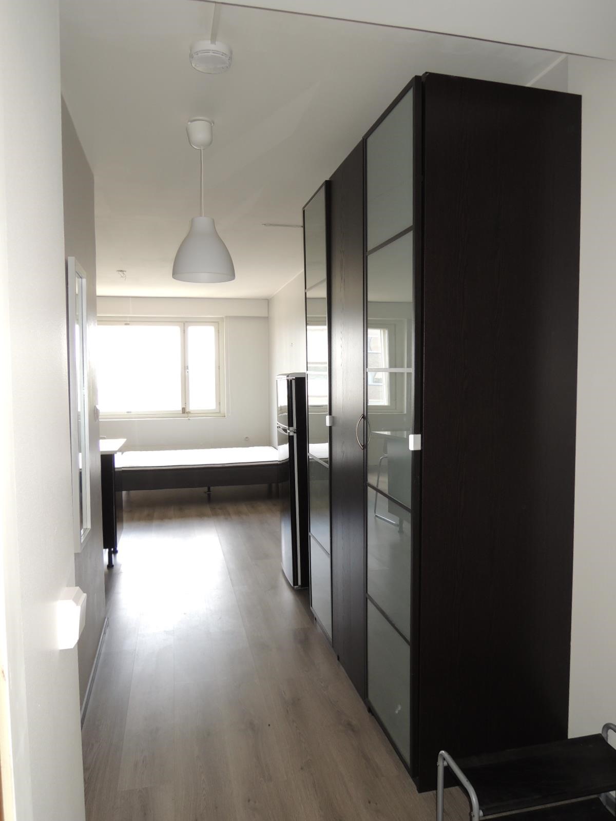 kylpyhuone: laatoitettu. asuinhuone: seinät maali/tapetti, laminaattilattia.