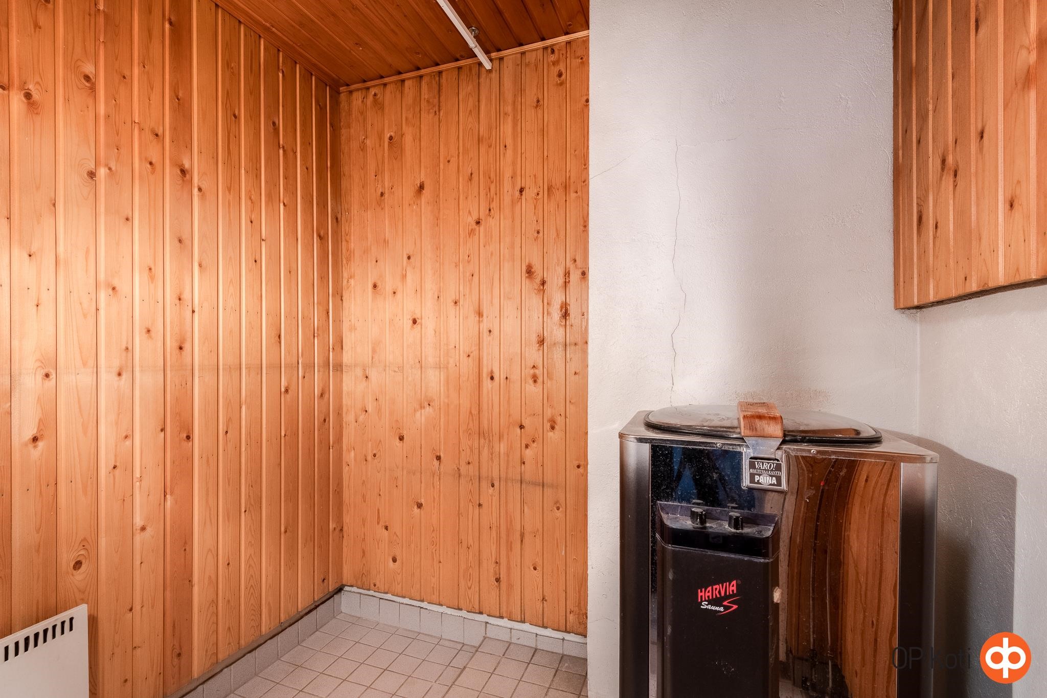 - Sauna saunassa ei lauteita, sähkökiuas, kylpyhuone, erillinen wc, suihku, peilikaappi wc-tilassa, pesukoneliitäntä, kiinteät valaisimet.