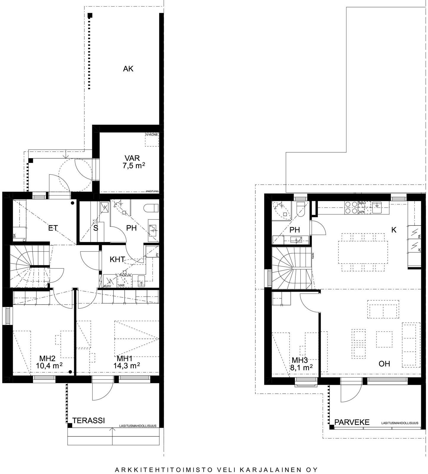 - 7,5 m2Muihin tiloihin luetaan ulkovarasto.