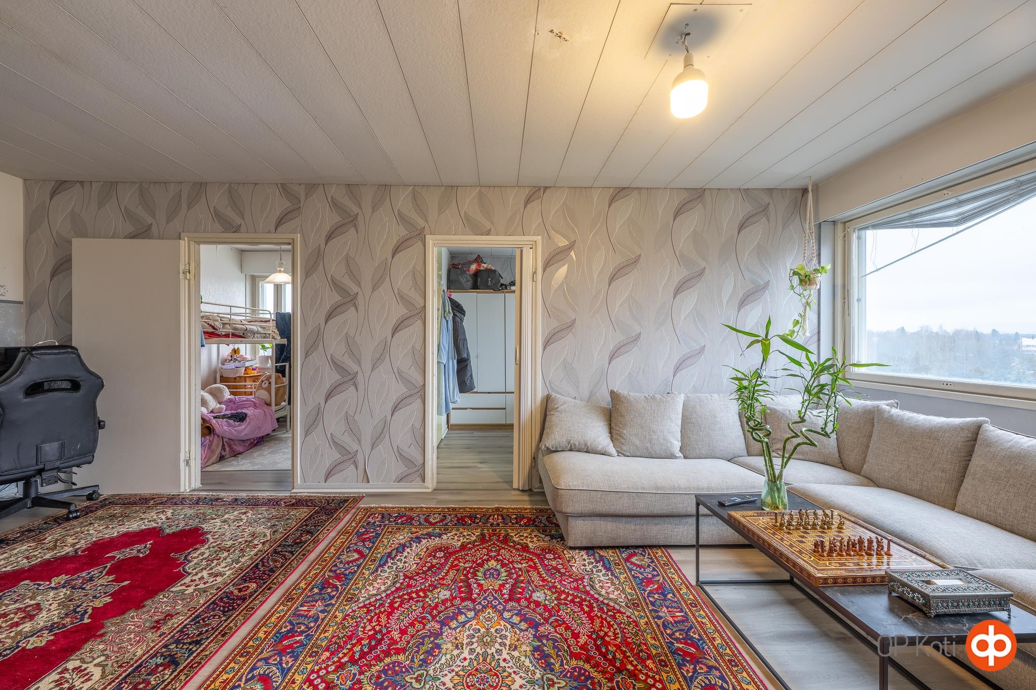 Keittiö: Maalatut seinät, laminaatti. Olohuone: Tapetti, laminaatti. Makuuhuone 1: Tapetti, laminaatti. Makuuhuone 2: Tapetti, laminaatti. Kylpyhuone: Laatta/maali, laatta.