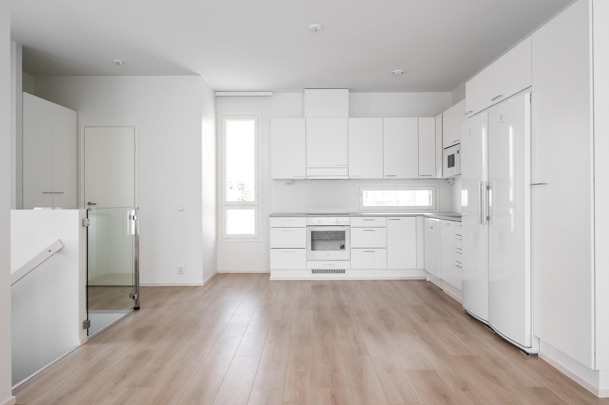 - Jääkaappi, pakastekaappi, erillisuuni, liesitaso (induktio), liesituuletin, mikroaaltouuni, astianpesukone, kaapistot.