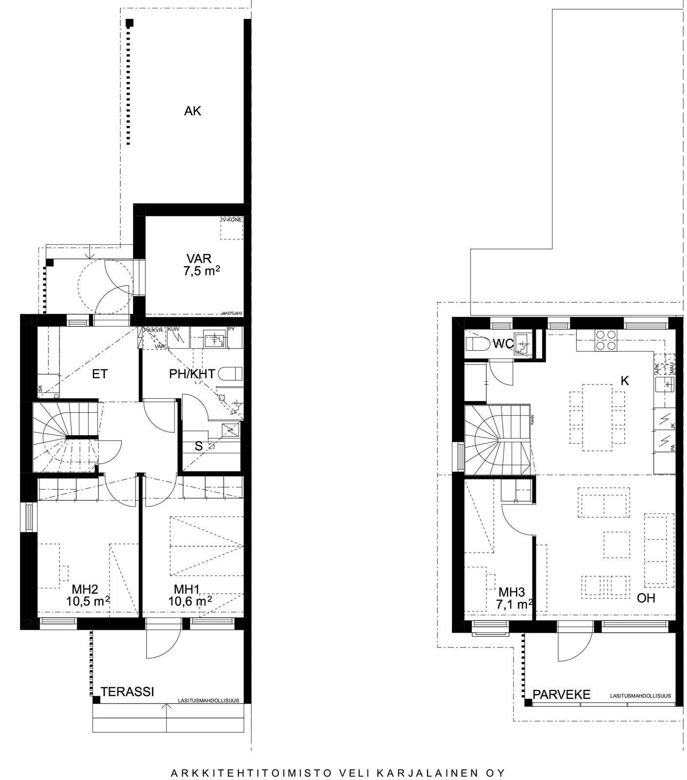 - 7,5 m2Muihin tiloihin luetaan ulkovarasto.