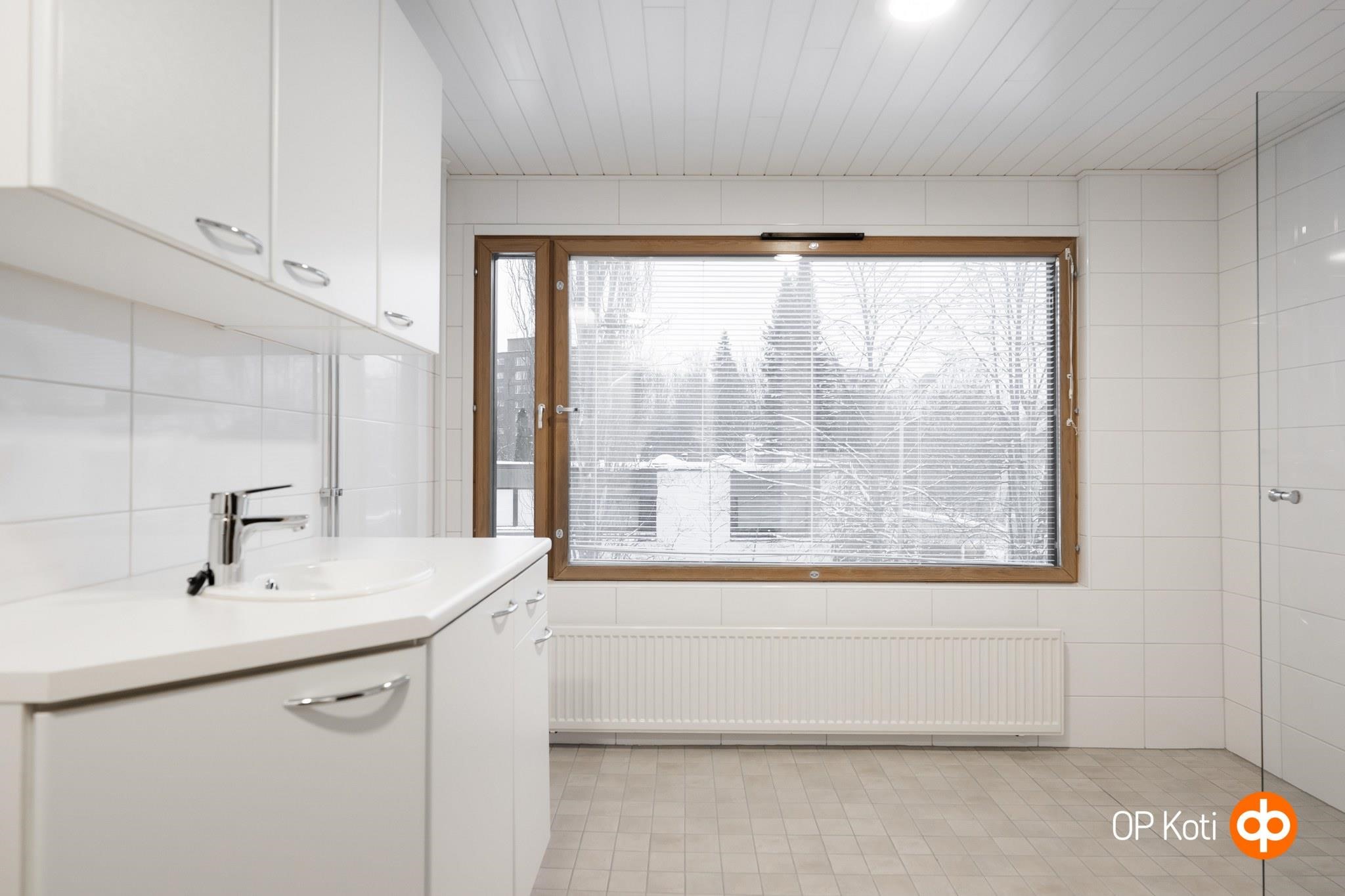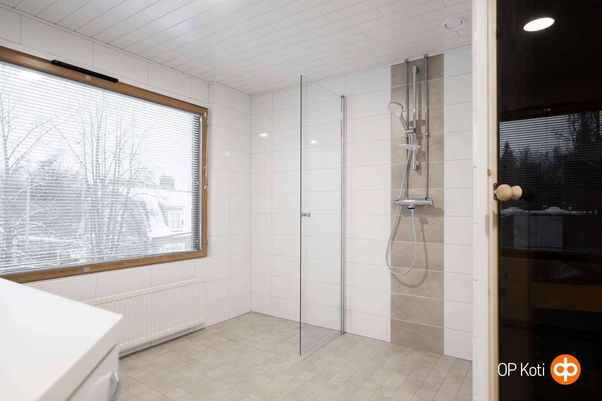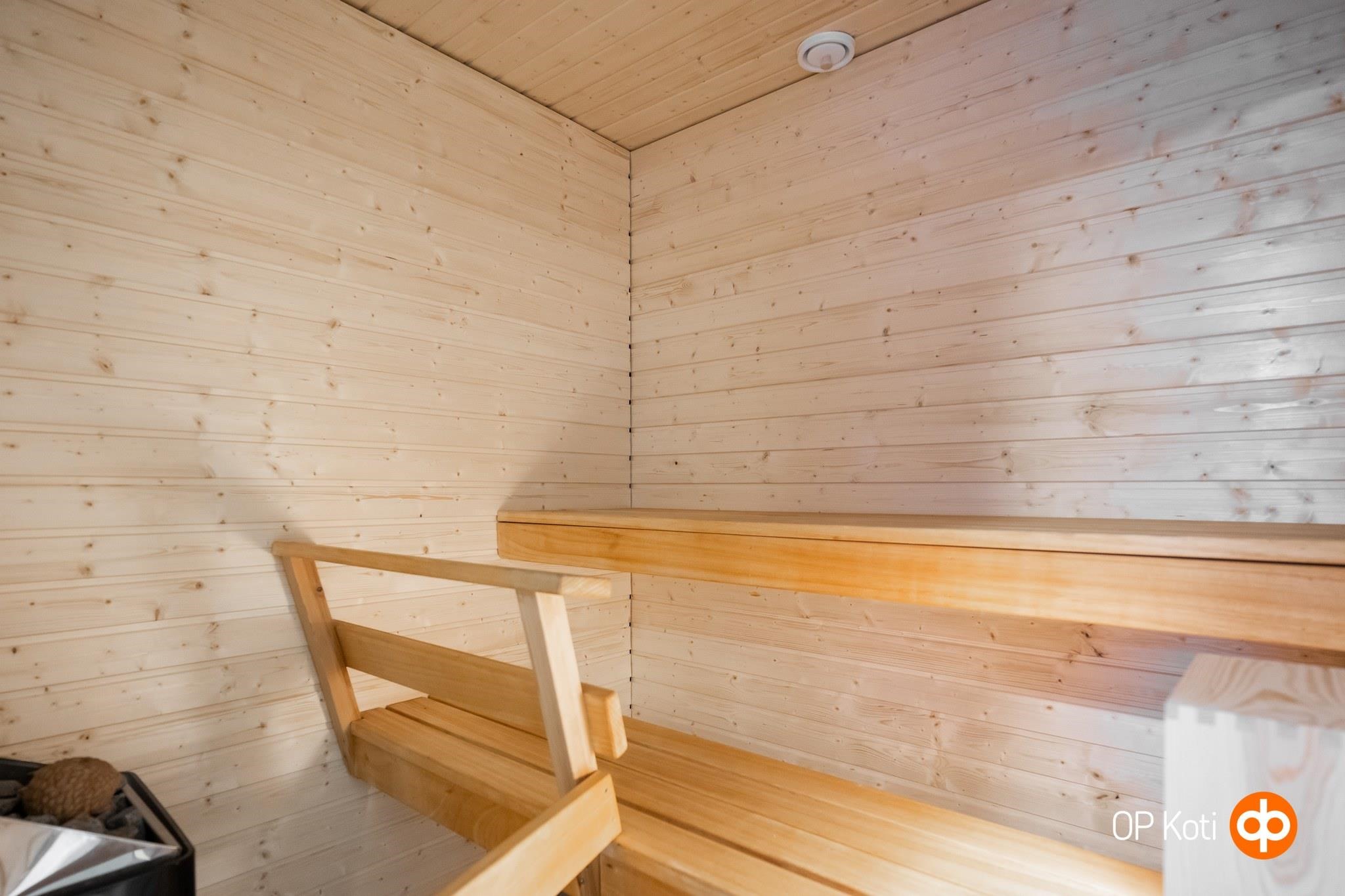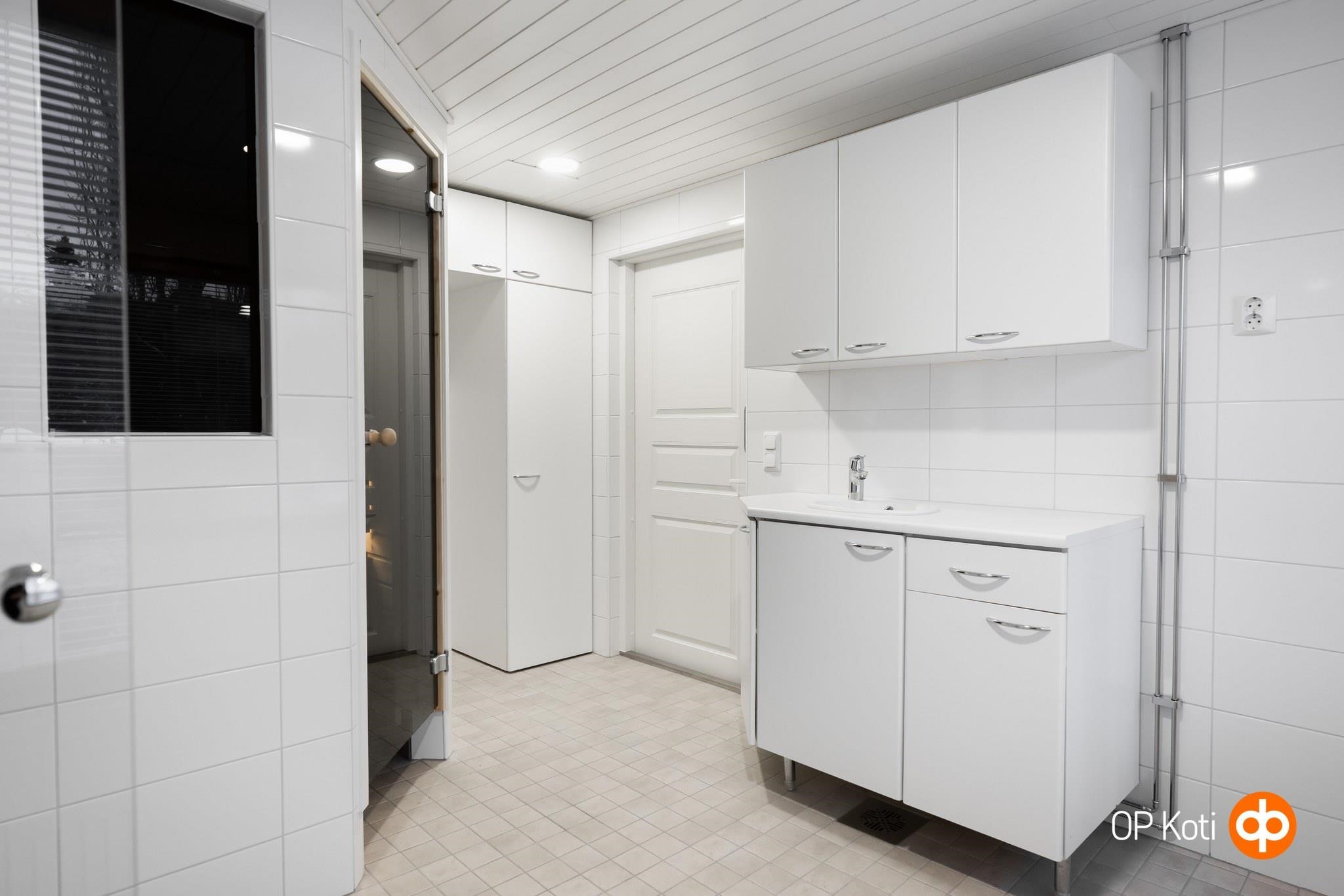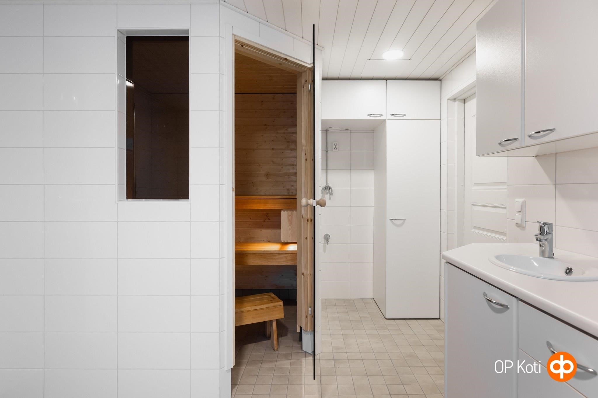 - Sauna, sähkökiuas, kylpyhuone, erillinen wc, suihku, suihkuseinä, peilikaappi Wc:ssä, allaskaappi, pesukoneliitäntä, lattialämmitys, kiinteät valaisimet.
