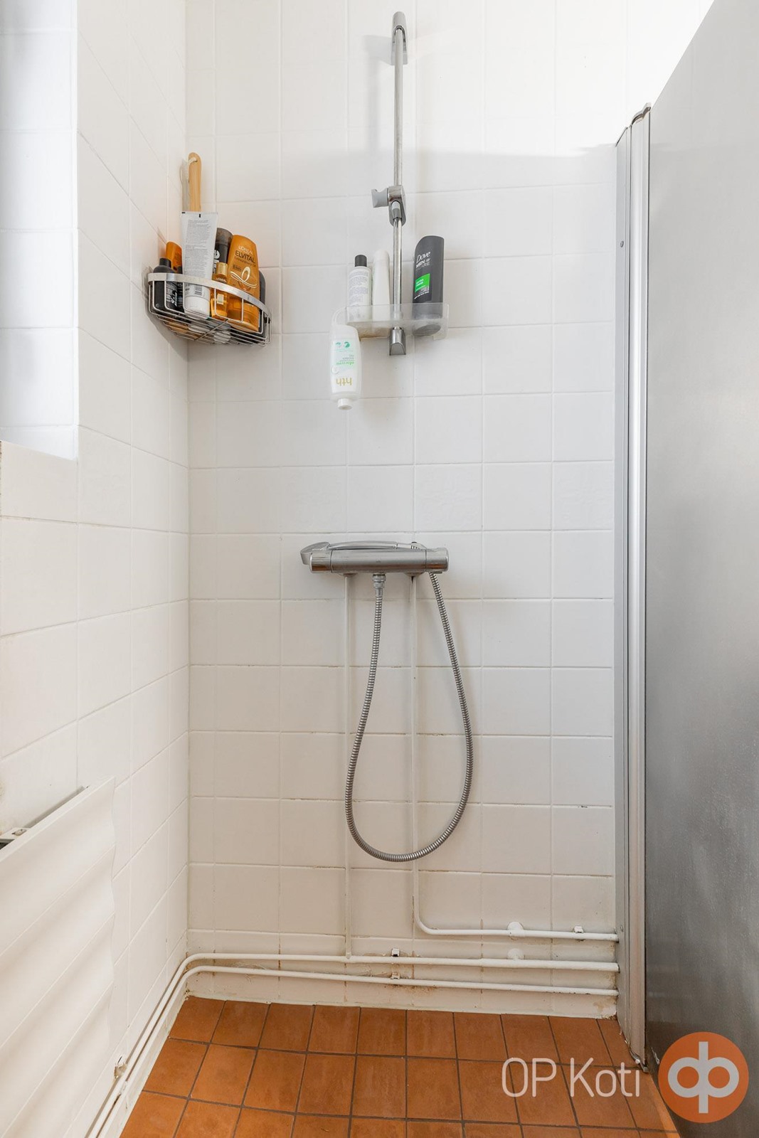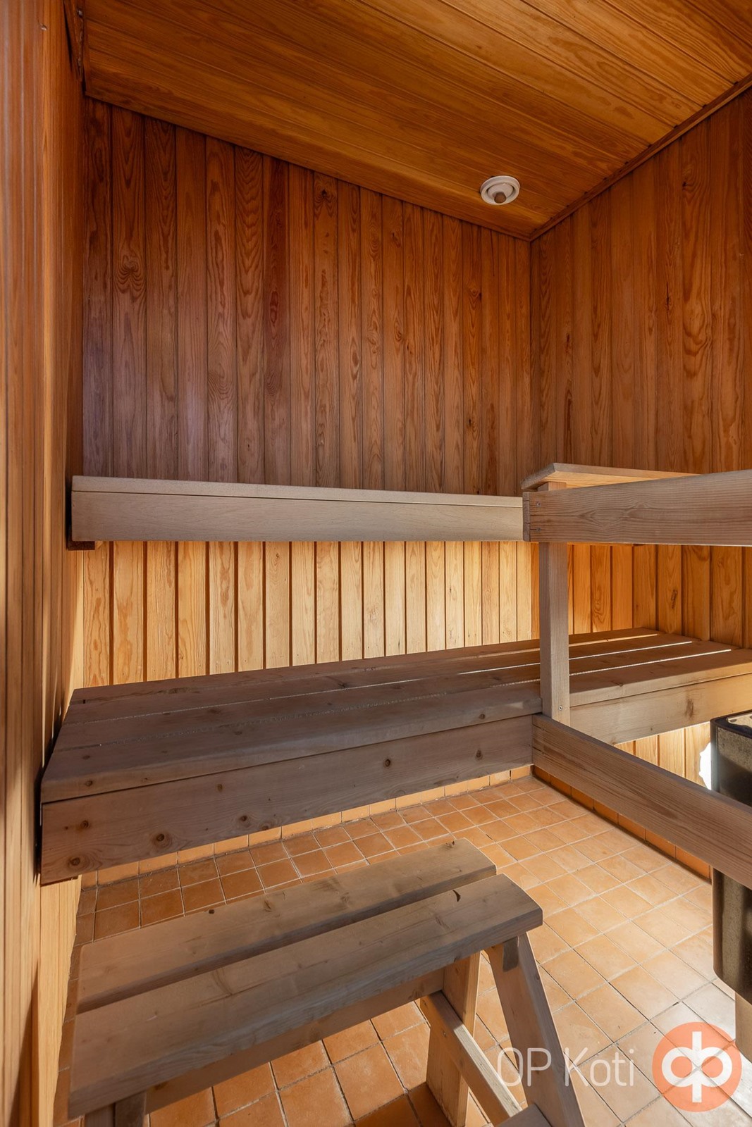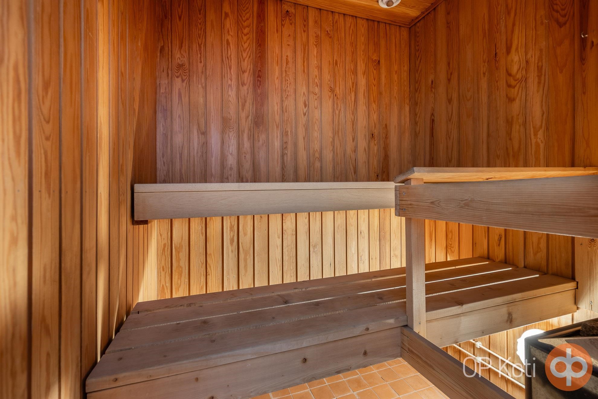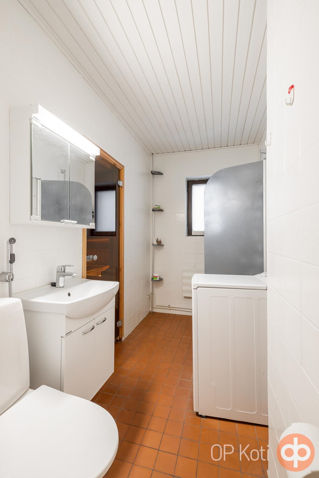 - Sauna, sähkökiuas, kylpyhuone, suihku, suihkuseinä (kääntyvä suihkuseinä), peilikaappi, allaskaappi, pesukoneliitäntä.