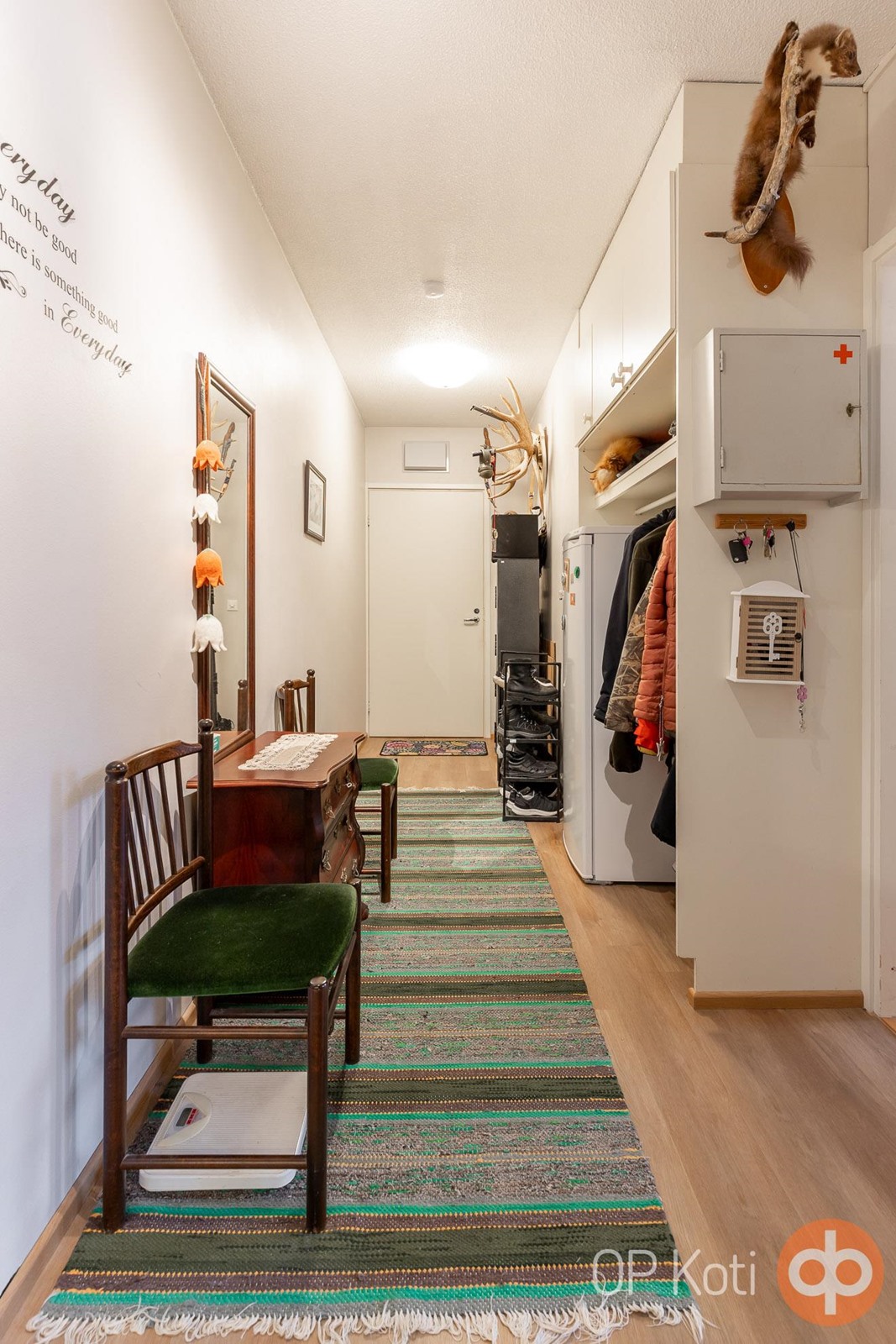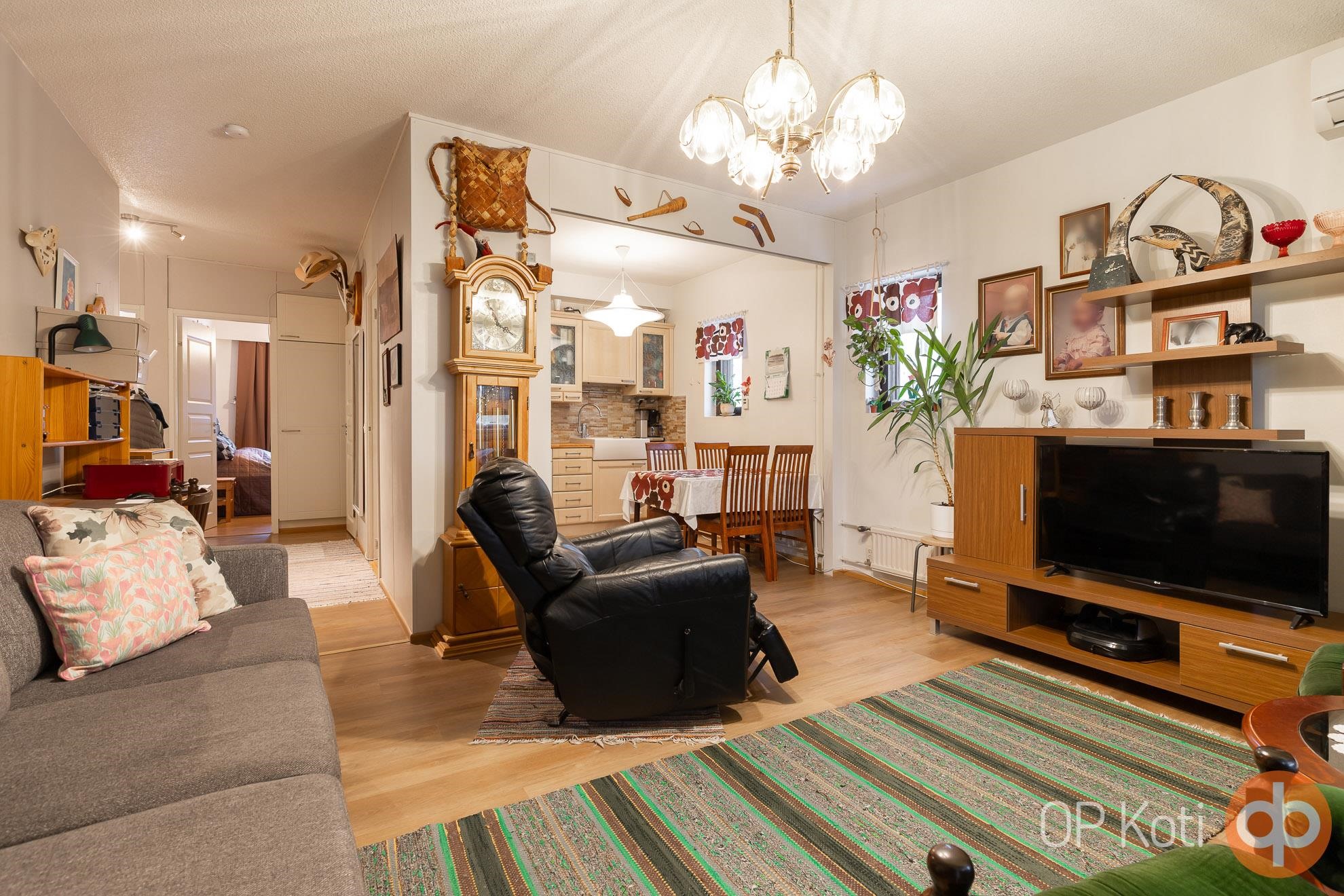 Tässä toisen kerroksen 66 m² kolmiossa on kodikas tunnelma ja hämmästyttävän toimiva pohjaratkaisu. Asunnossa on kolme huonetta, avokeittiö, sauna ja pesuhuone ilman turhia hukkaneliöitä. Tilat ovat tehokkaasti käytössä. Keittiön ja olohuoneen välinen seinä on purettu,mikä on avannut tilat kauniiksi kokonaisuudeksi ja tuonut asuntoon ihanaa ilmavuutta. Huoneet ovat selkeitä ja helposti sisustettavia, ja säilytystilaa löytyy kätevästi vaatehuoneesta. Talo sijaitsee rinteessä, minkä ansiosta pääsisäänkäynniltä noustaan vain kahdeksan porrasta, vaikka asunto on toisessa kerroksessa. Liikkuminen on siis vaivatonta, mutta näkymistä saa silti hieman korkeuden tuntua. Sijainti on erinomainen, aivan keskustan tuntumassa kaikkien palveluiden lähellä. Tämä asunto sopii hyvin niin omaan käyttöön kuin sijoitukseen: kompakti kokonaisuus, mukava pohjaratkaisu ja erittäin toimiva sijainti tekevät siitä houkuttelevan vaihtoehdon monenlaisiin elämäntilanteisiin. Varaa heti oma esittelyaikasi!
