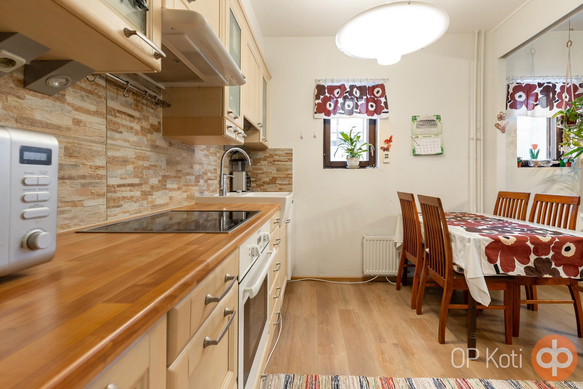 2021 Kattoremontti 2023 Lämmönvaihtimen uusiminen 2025 Julkisivun huoltomaalaus Sisältää myös sokkelin maalauksen, sekä jätekatoksen pesu, maalaus ja sammaleenpoisto. Pihan osalta tehdään kurtturuusujen poisto, alustan tasaus kahdeksi parkkipaikaksi, paikataan pihan reikiä (mm. asfalttia, takaoven edustaa) sekä korjataan sadeveden poisohjausta (kaivoon).. Asunnon remontit: Keittiöremontti tehty edellisten omistajien aikaan v. 2011. Pintaremonttia tehty edellisen omistajien aikaan. Isännöitsijäntodistus 16.1.2026: Huoneistoremontti 2021: Parketin päälle laitettu laminaatti. Kylpyhuoneen seinät, katto ja patteri maalattu. Kylpyhuonekalusteet ja hanat vaihdettu uusiin. Ilmalämpöpumpun asennus 2019. Keittiöremontti 2011: Kaapistojen, altaan ja lieden uusiminen.