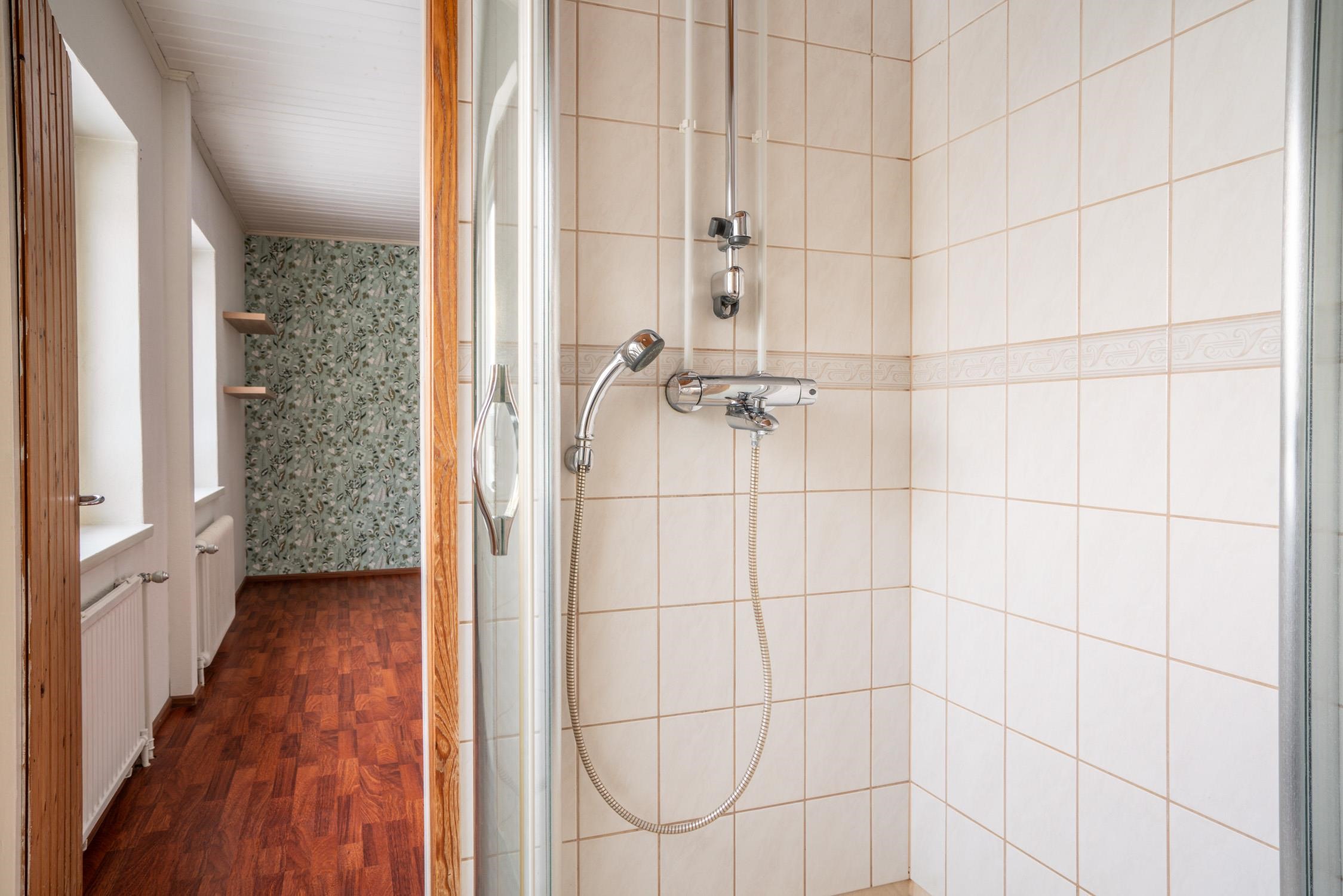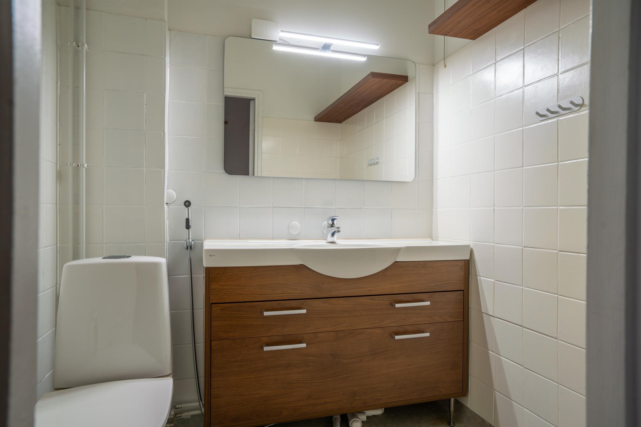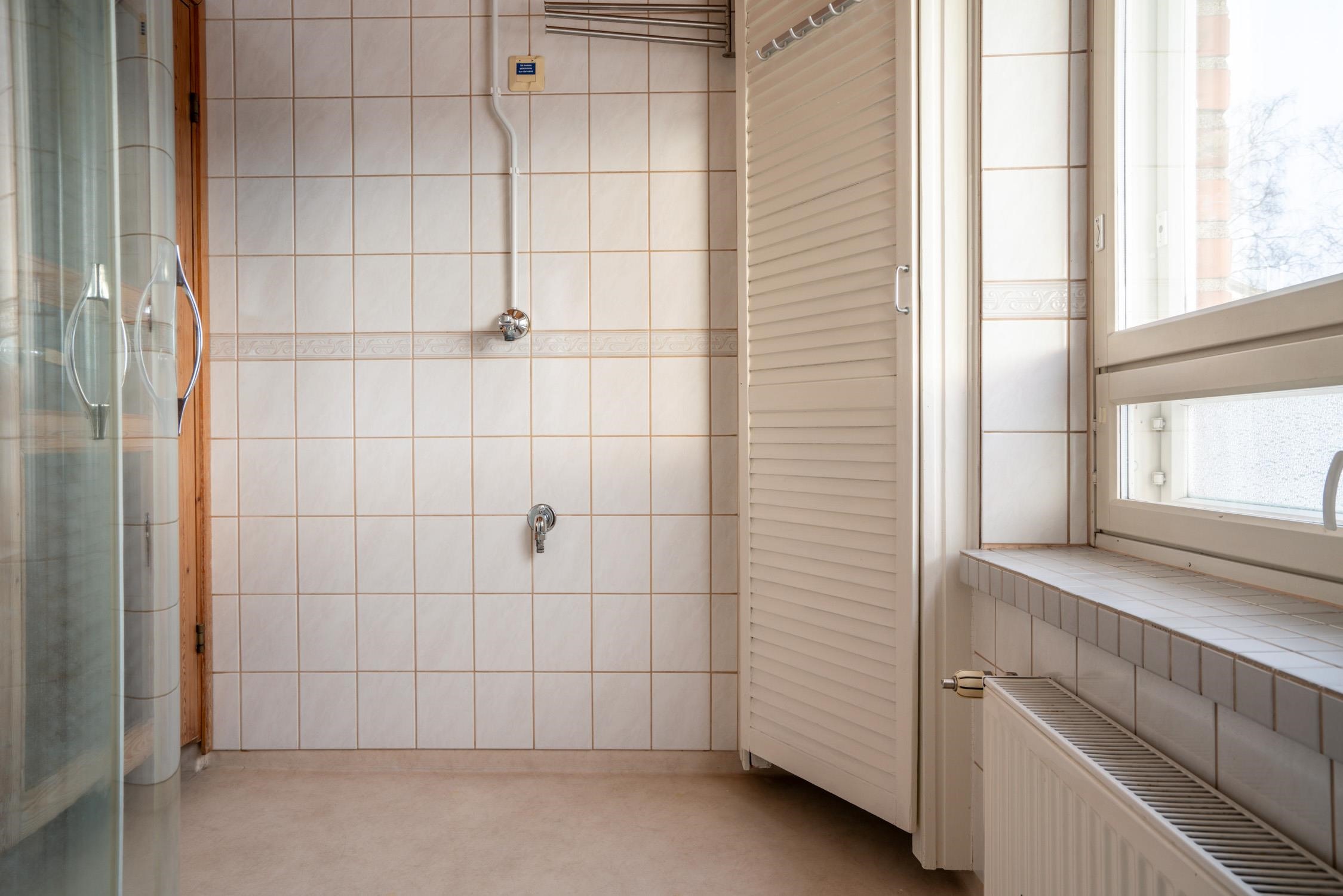 - Sauna, sähkökiuas, kylpyhuone, erillinen wc, suihku, suihkuseinä, peilit, allaskaappi, pesukoneliitäntä, kiinteät valaisimet.