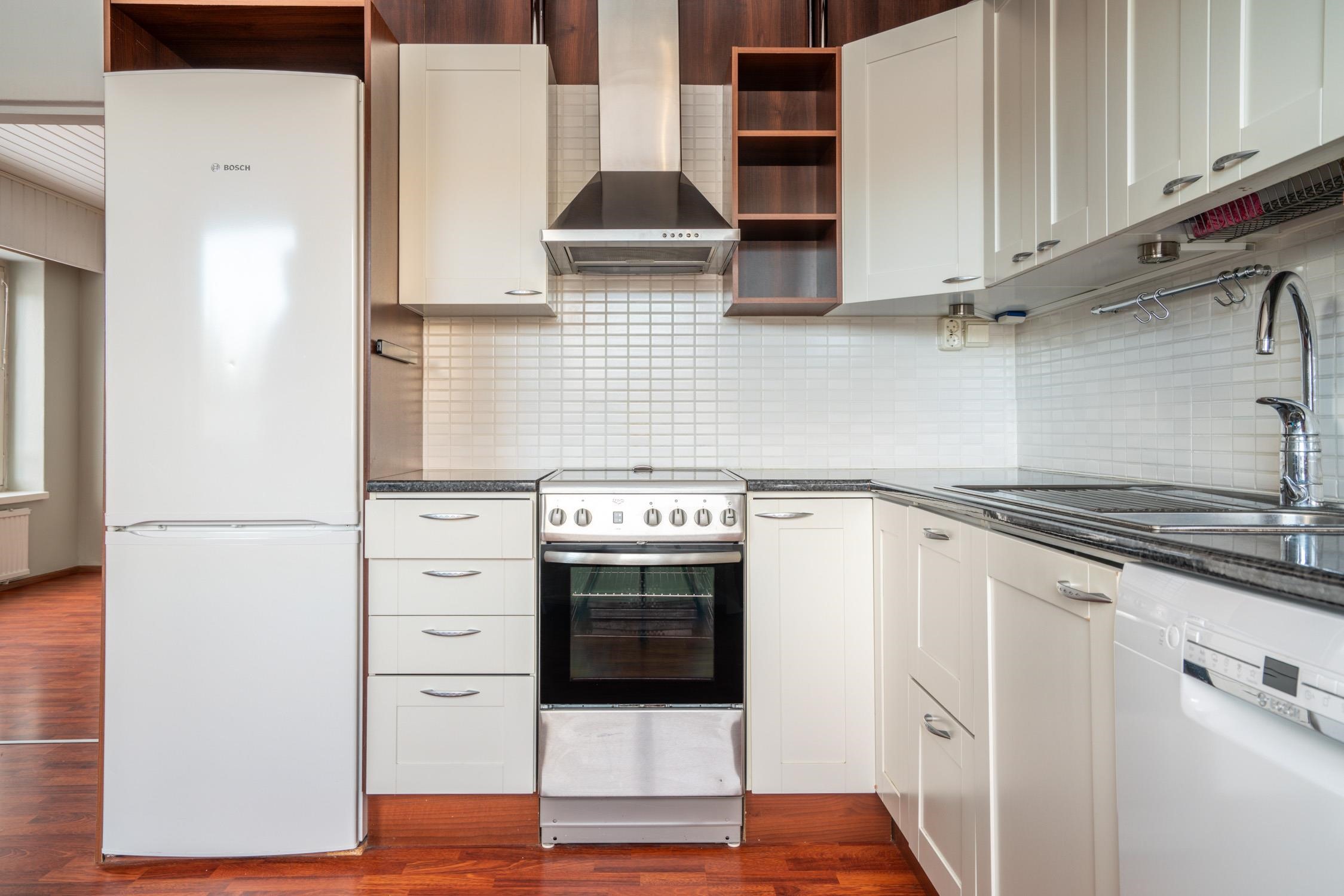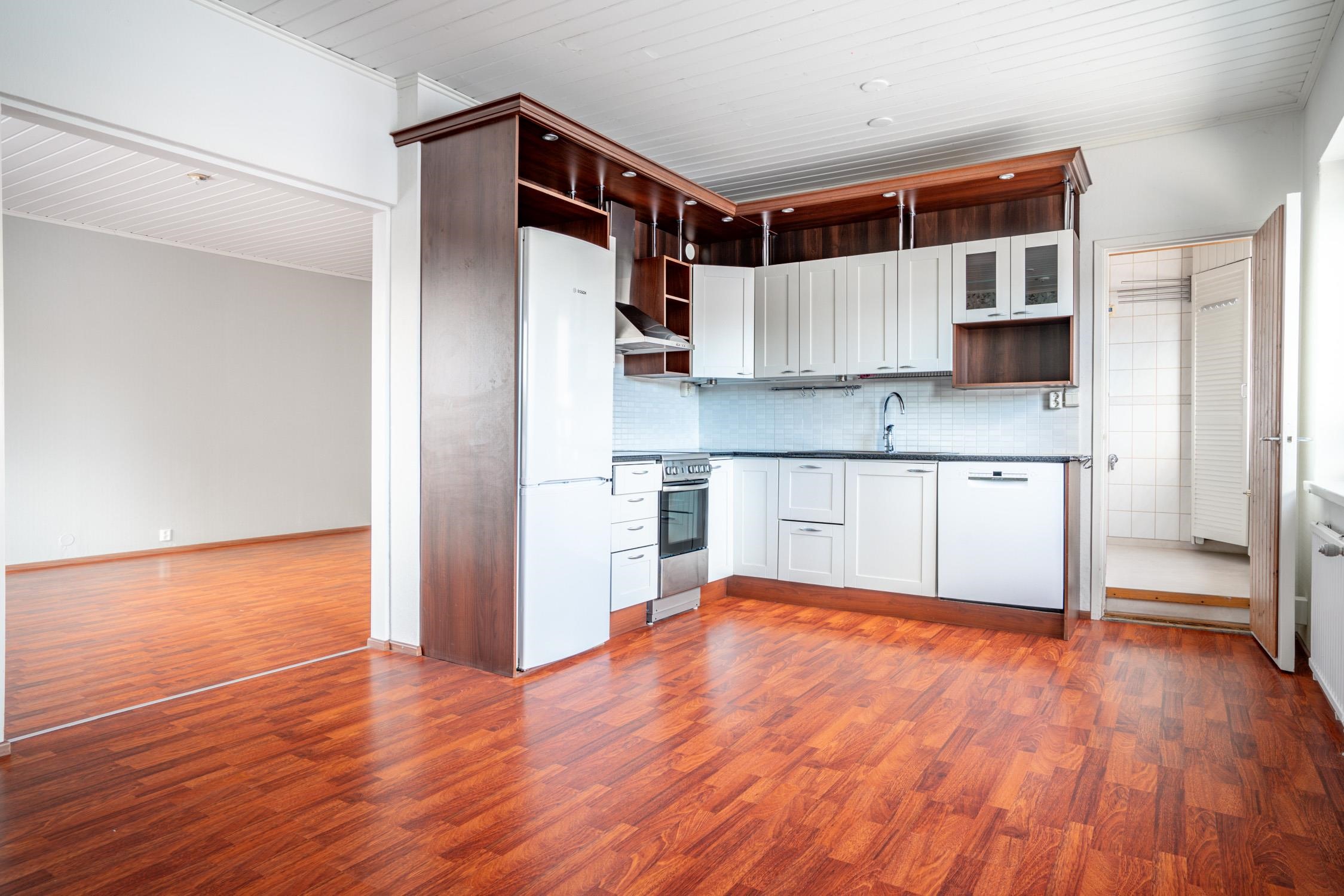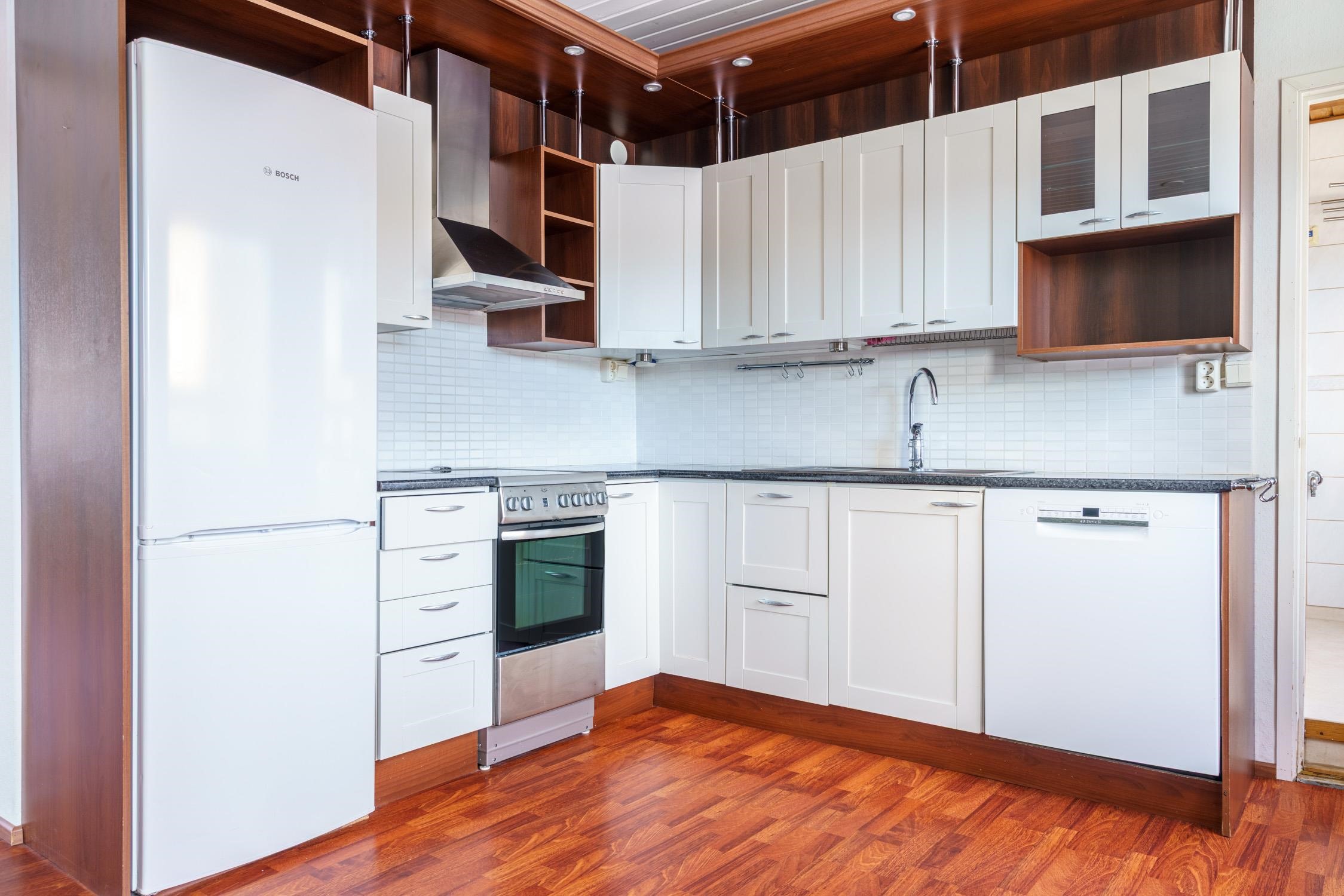 - Jääkaappipakastin, sähköliesi, keraaminen liesi, liesituuletin, astianpesukone uusittu 2022, kaapistot, kiinteät valaisimet.