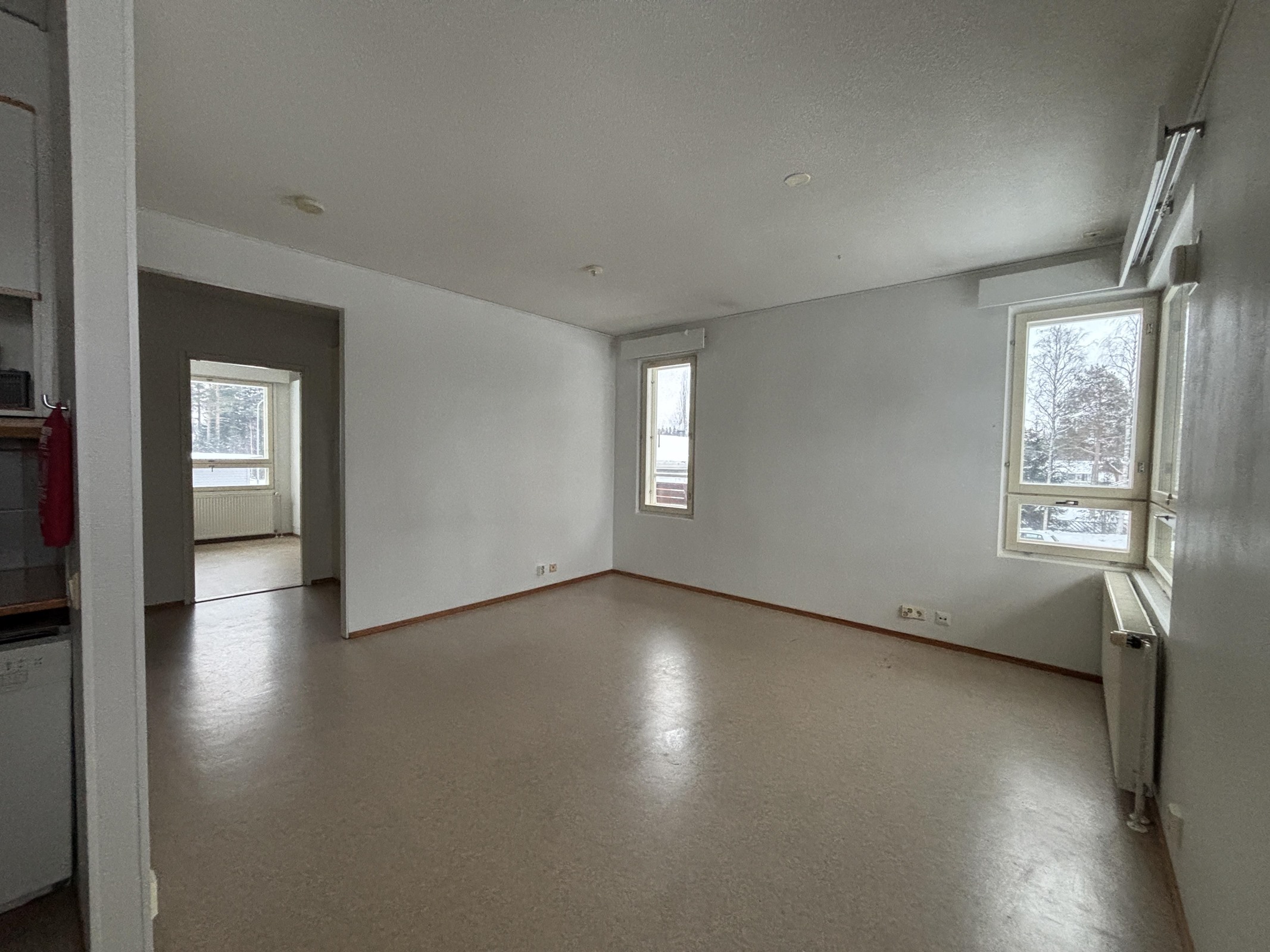 keittiö: seinät: maali, lattia: muovi. olohuone: seinät: maali, lattia: muovi. makuuhuone: seinät: maali, lattia: muovi. kylpyhuone/sauna: seinät: laatta/paneli, lattia: muovi.