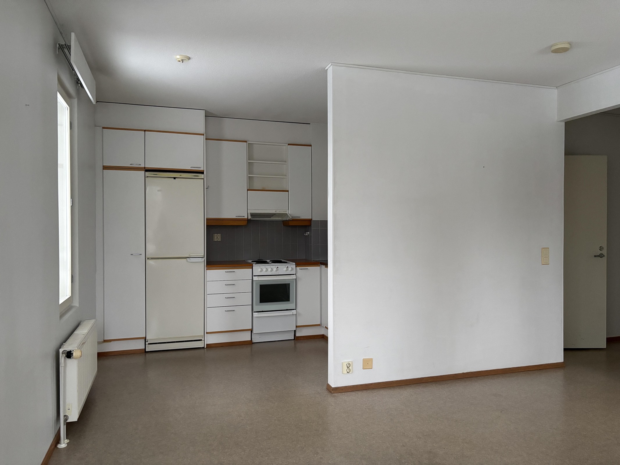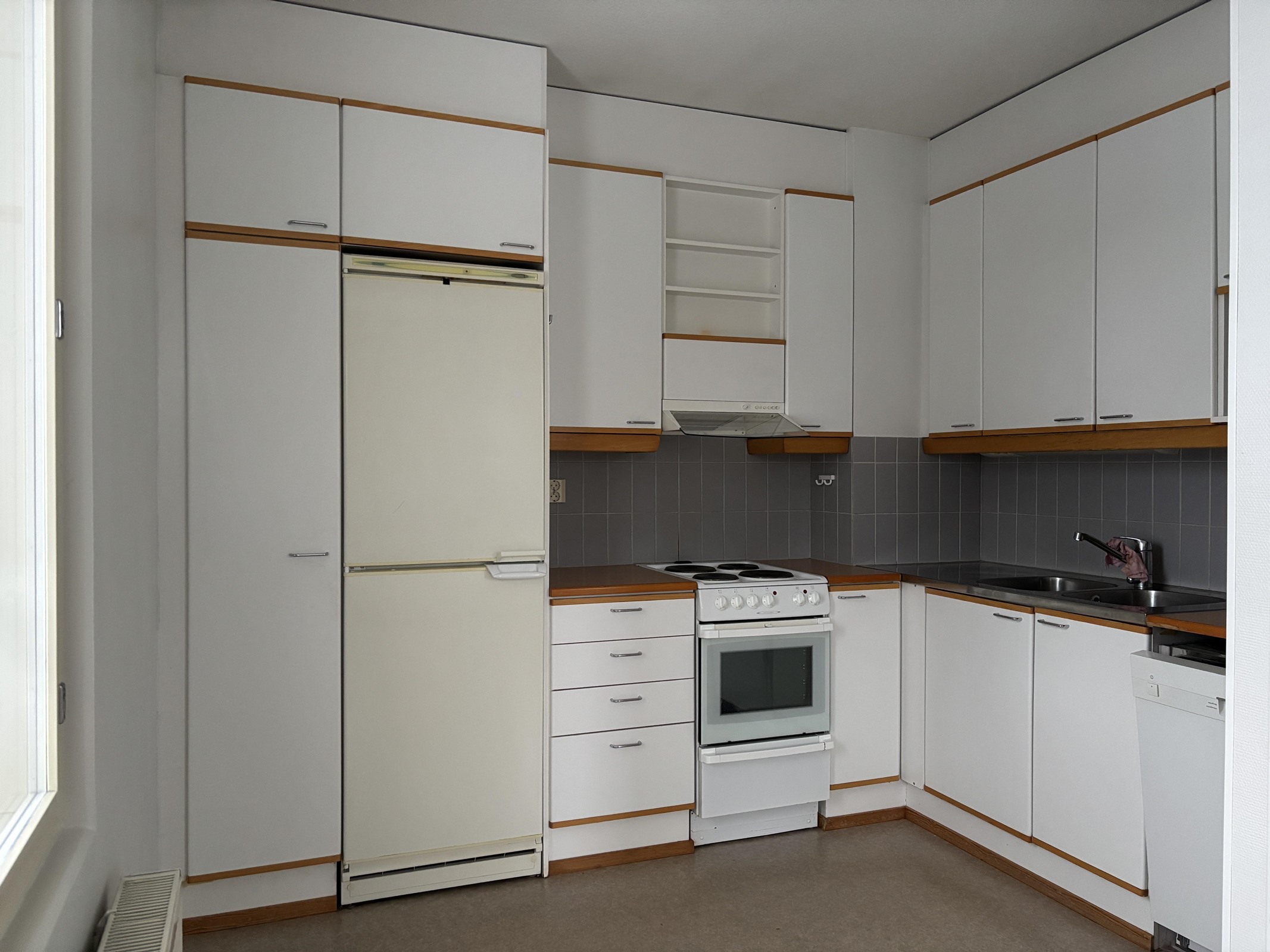 - Jääkaappipakastin, lattialiesi, liesituuletin, kaapistot, kiinteät valaisimet.