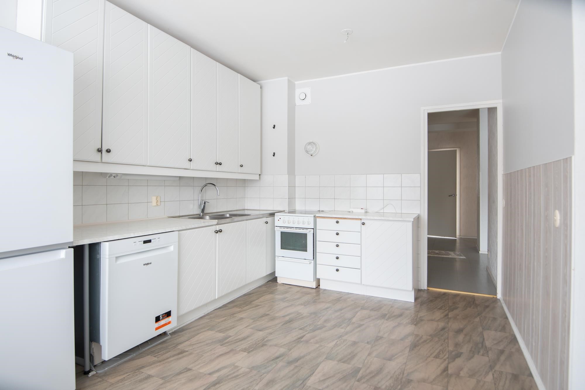 - Jääkaappi, pakastekaappi, lattialiesi keraaminen, astianpesukone, kaapistot, kiinteät valaisimet.