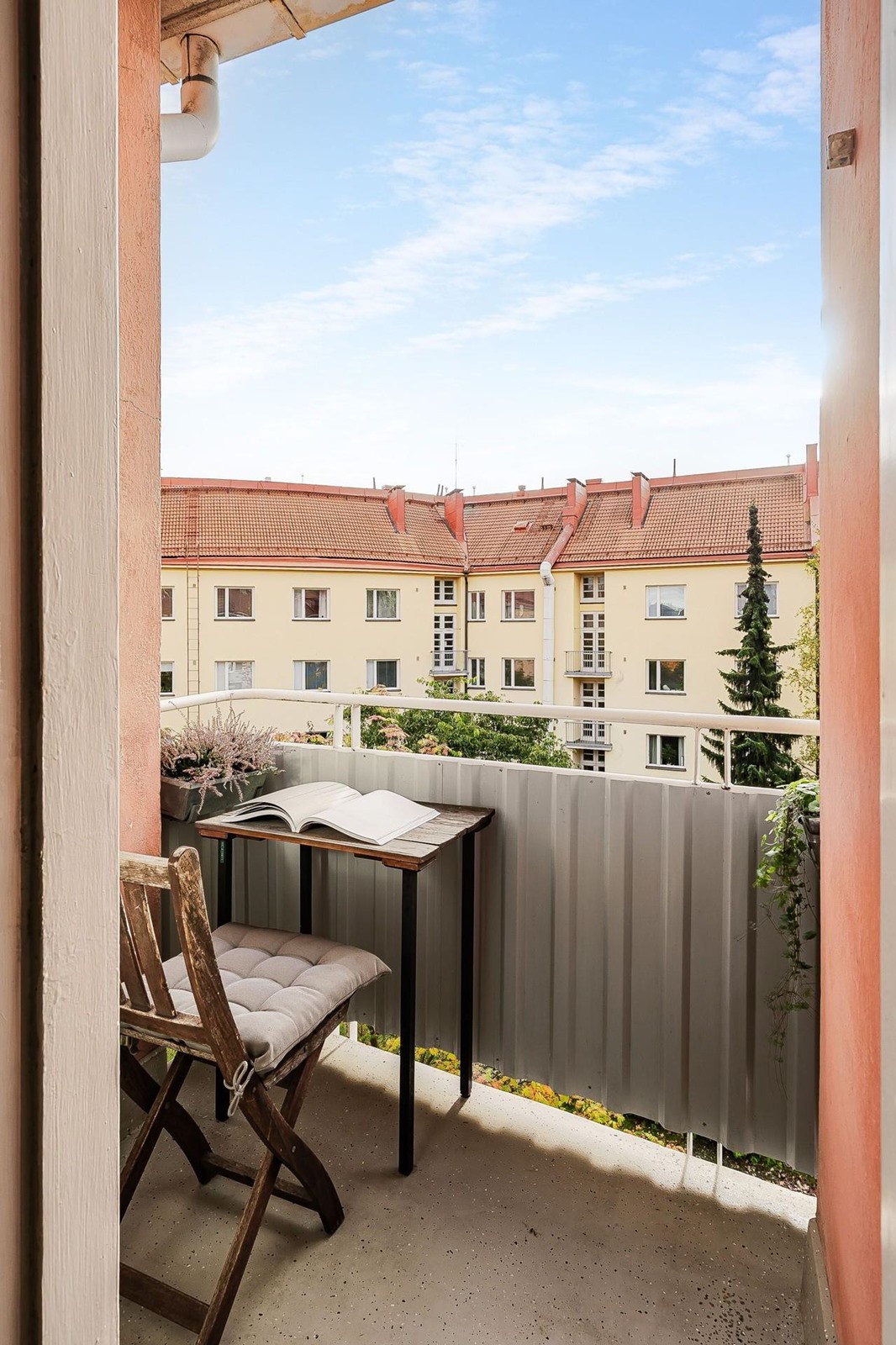 - Parveke noin kaakkoon aukealle sisäpihalle