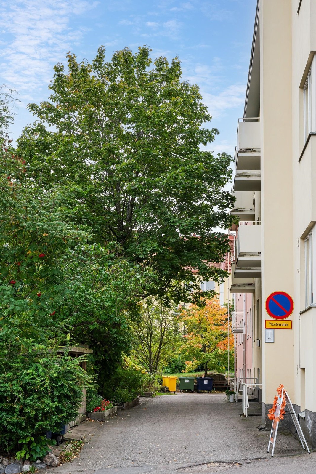 Isojen katujen, Mäkelänkadun ja Sturenkadun, läheisyydestä huolimatta äänet pysyvät loitolla.