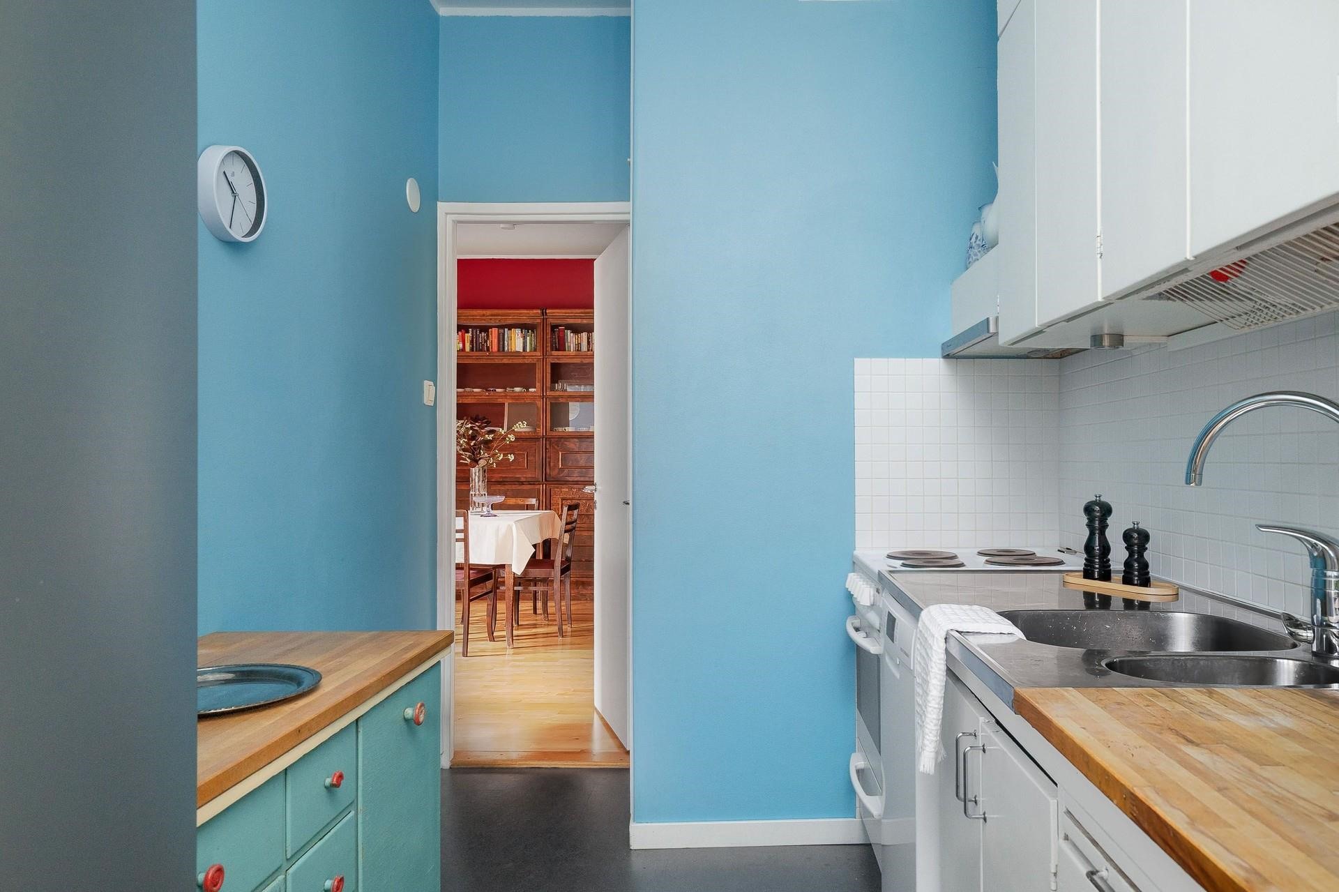 Viehättävä ylimmän kerroksen pienen perheen asunto halutusta Vallilasta, hyvien kulkuyhteyksien ääreltä.
