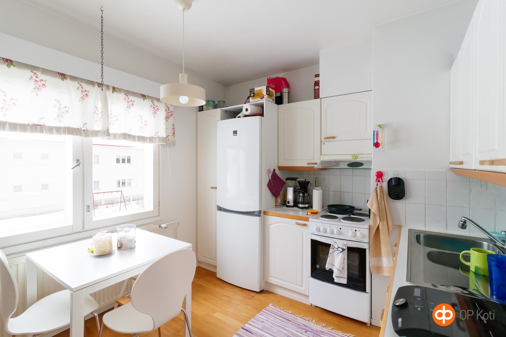 - Jääkaappipakastin, sähköliesi, liesituuletin, kaapistot. on paikka astianpesukoneelle