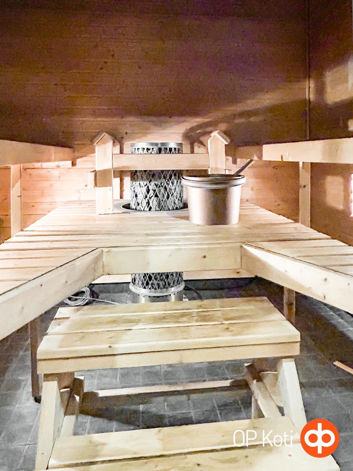 - Sauna, sähkökiuas, kylpyhuone, erillinen wc, suihku, pesukoneliitäntä kodinhoitohuoneessa, lattialämmitys, kiinteät valaisimet.