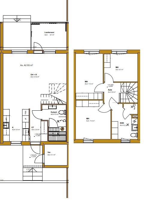 - Asuntokohtainen ilmanvaihto lämmöntalteenotolla. Ilmanvaihtokone sijaitsee kodinhoitohuoneessa.