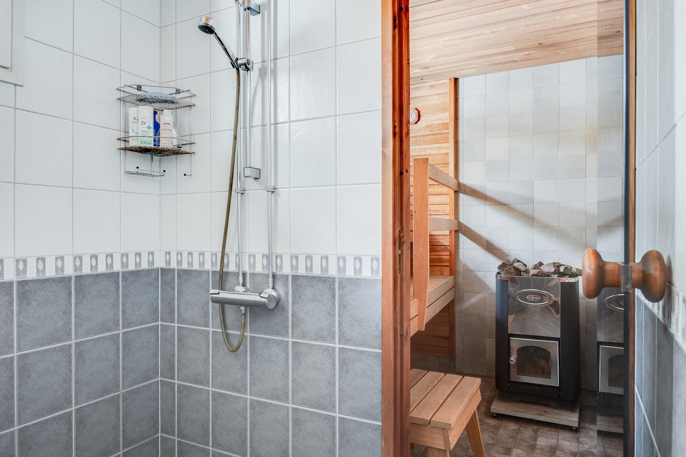 - Sauna, puukiuas, kylpyhuone (uusittu n. 15v sitten), erillinen wc jossa kaapistot + peilikaappi, lattialämmitys, pesukoneliitäntä varastossa, lattialämmitys, kiinteät valaisimet.